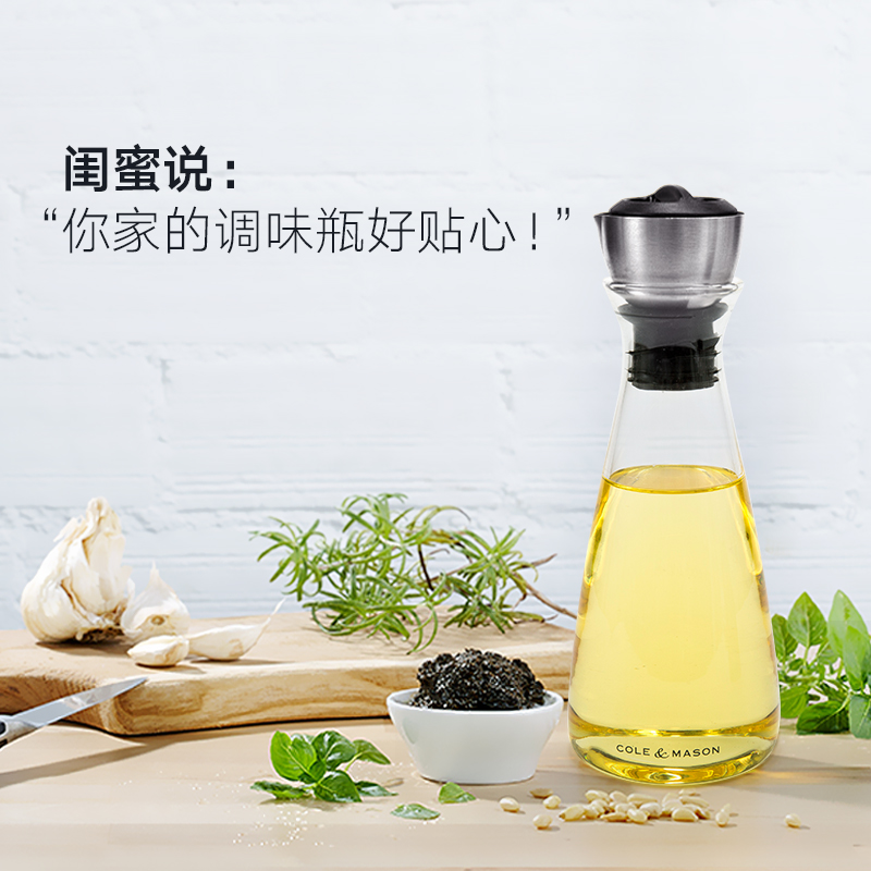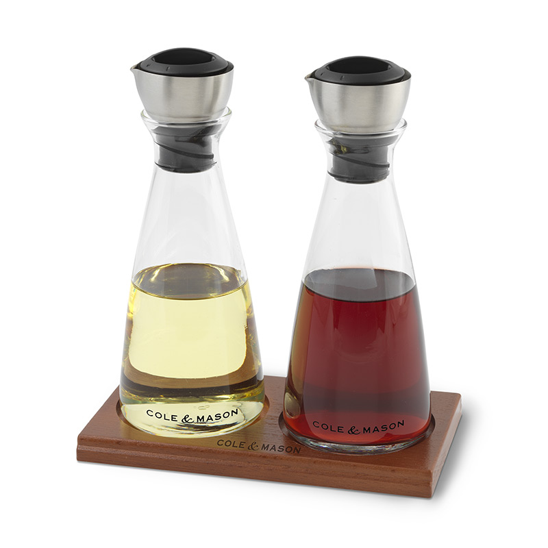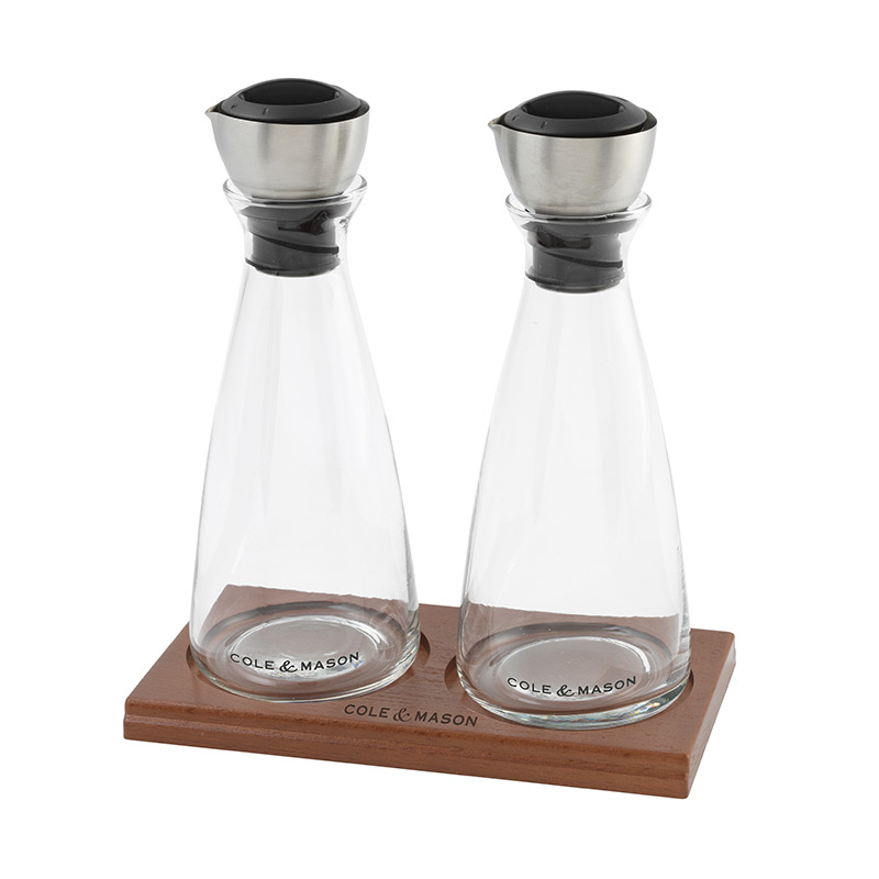 旋钮式玻璃油瓶醋瓶两件套(带木托)