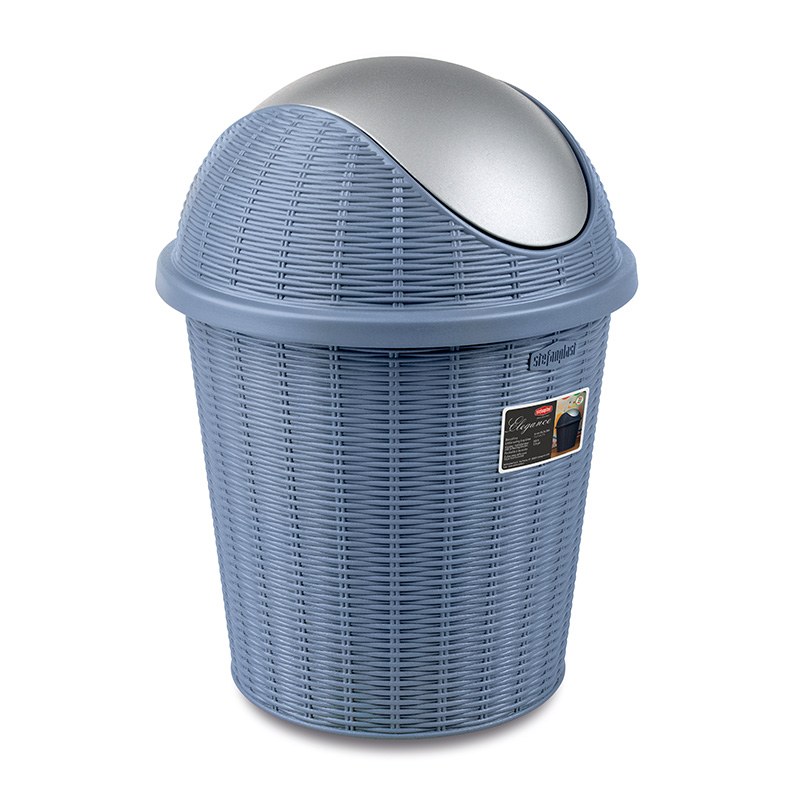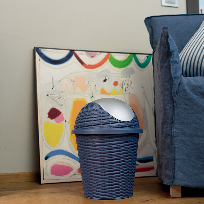 藤编摇盖垃圾桶10L 蓝色