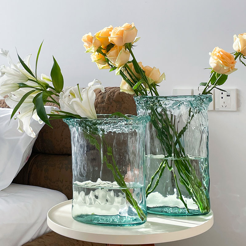潘多拉玻璃花瓶 褶皱纹 浅蓝 h33cm