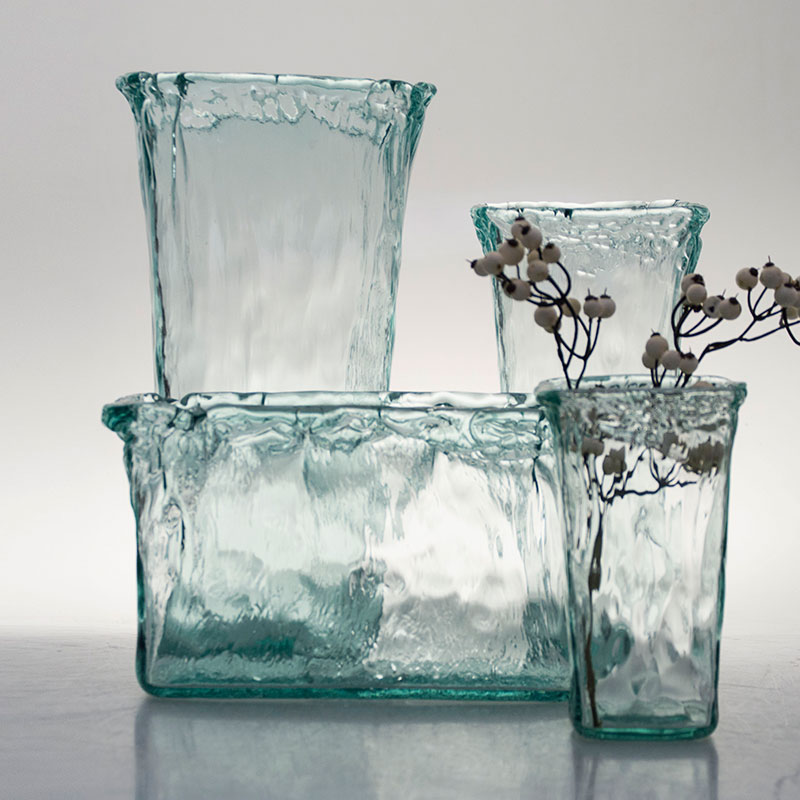 潘多拉玻璃花瓶 褶皱纹 浅蓝 h22cm