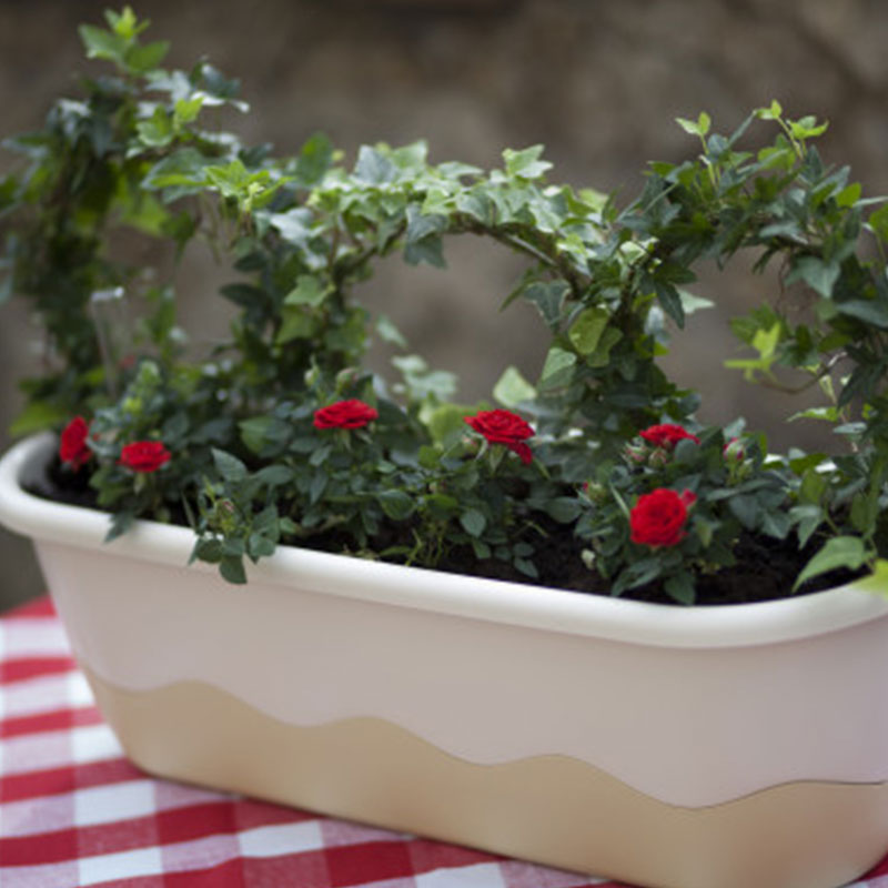 玛丽塔系列 自吸水花盆 长方形 奶白色 60cm