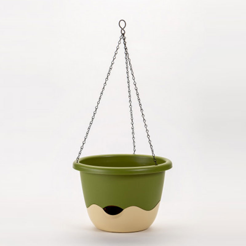 玛丽塔系列 自吸水圆形拼色花盆 白绿色 25cm