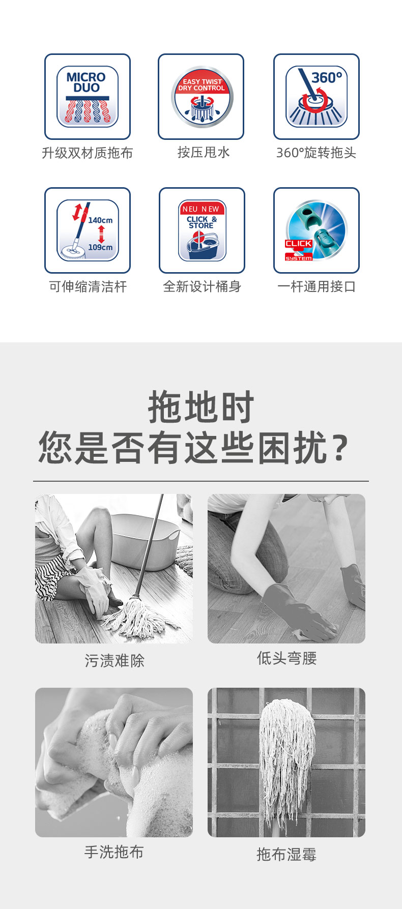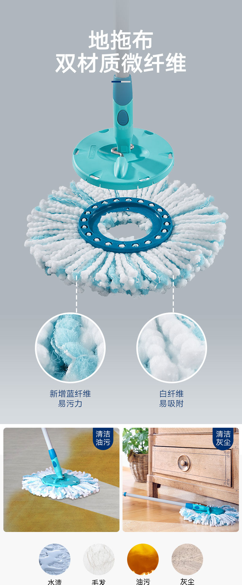 旋转拖布头 圆头 双色 适用于52019/52101