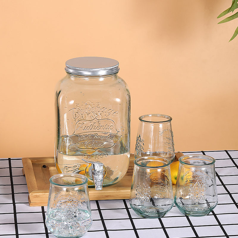 带水龙头玻璃水罐五件套 4L+400ml*4
