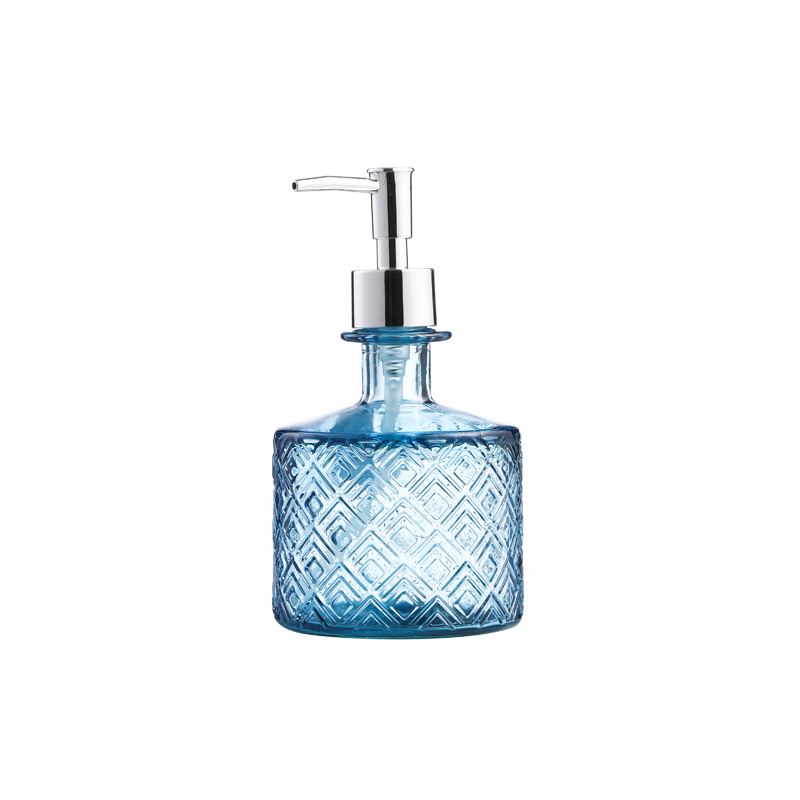 玻璃皂液分装瓶 花纹 天青色 430ml