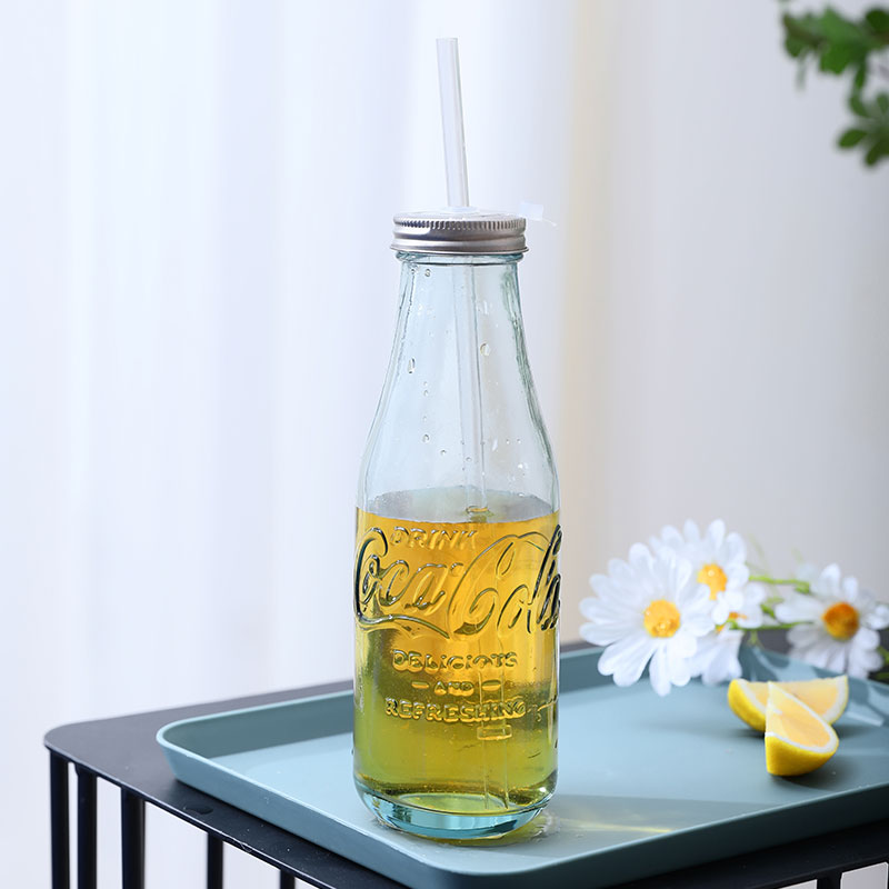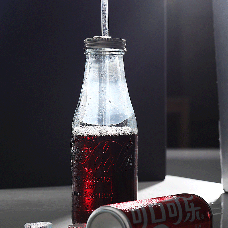 可口可乐吸管玻璃杯 浅蓝 h22cm 550ml