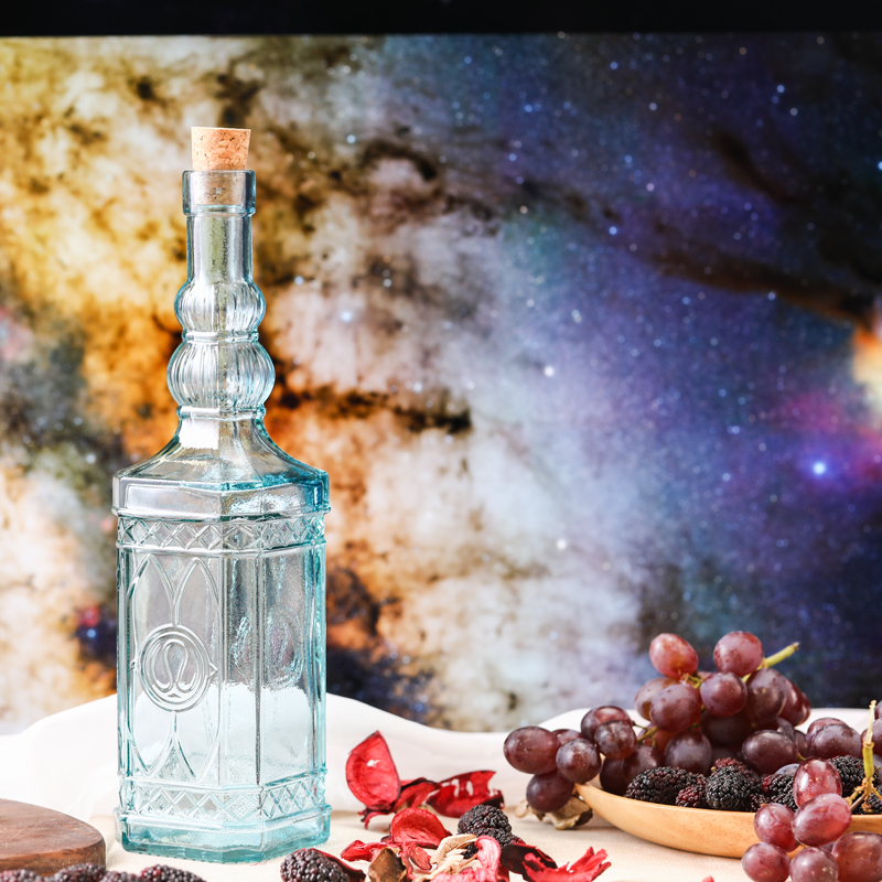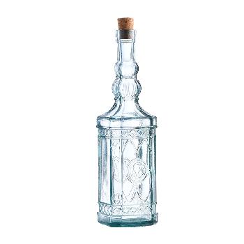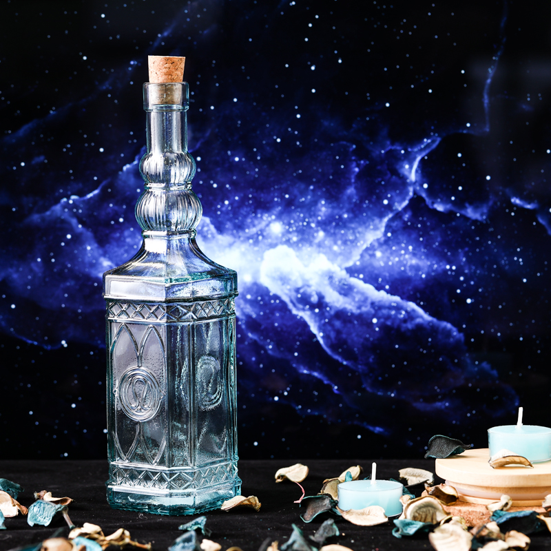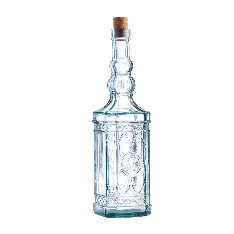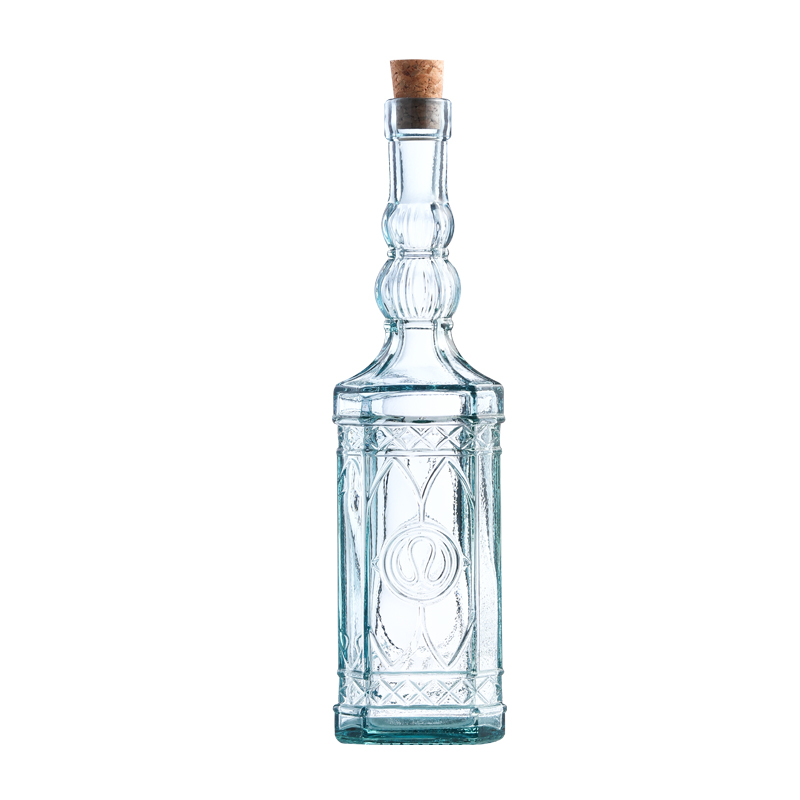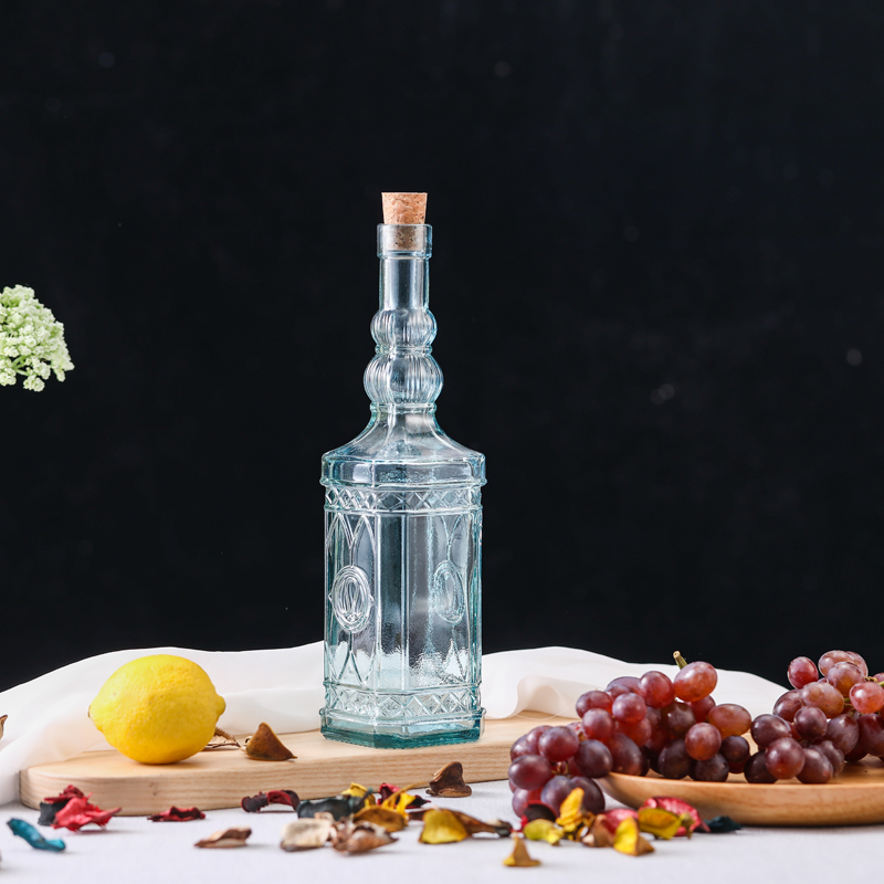 软木塞玻璃液体调味瓶 方花纹 淡蓝 500ml