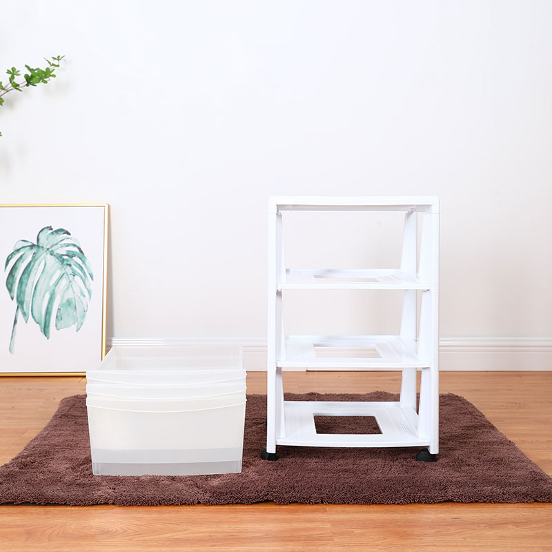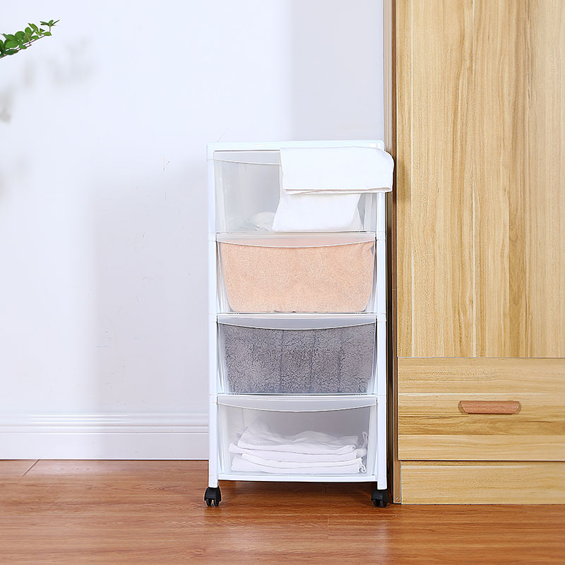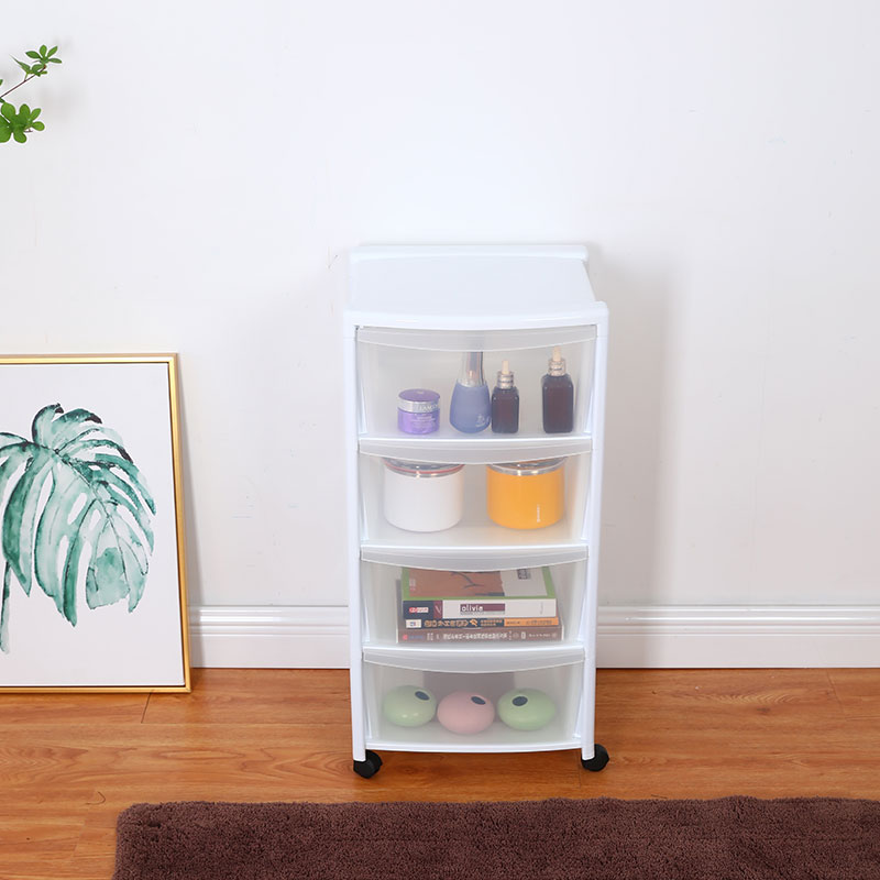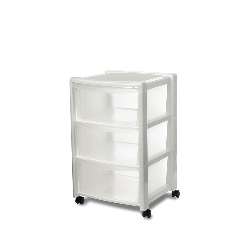 三层抽屉收纳柜 白色带轮