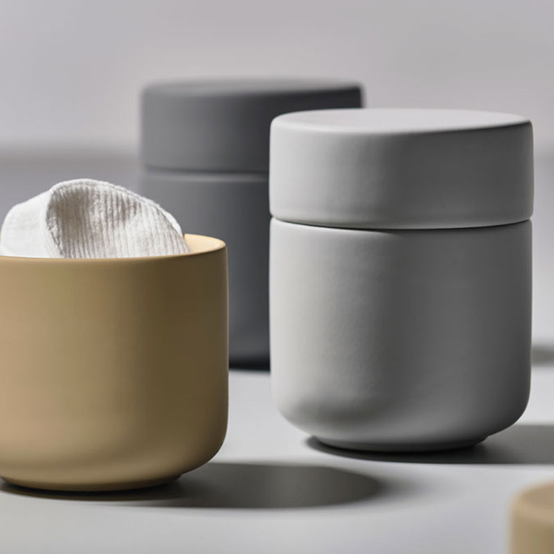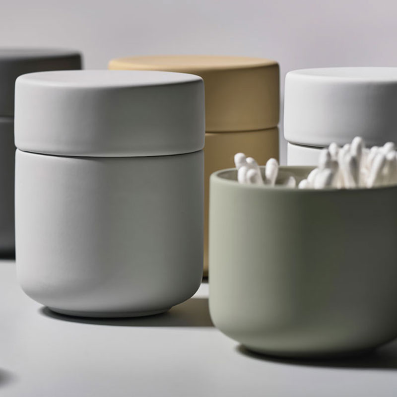 棉签收纳盒 D8.3 x H10.3 cm 浅灰
