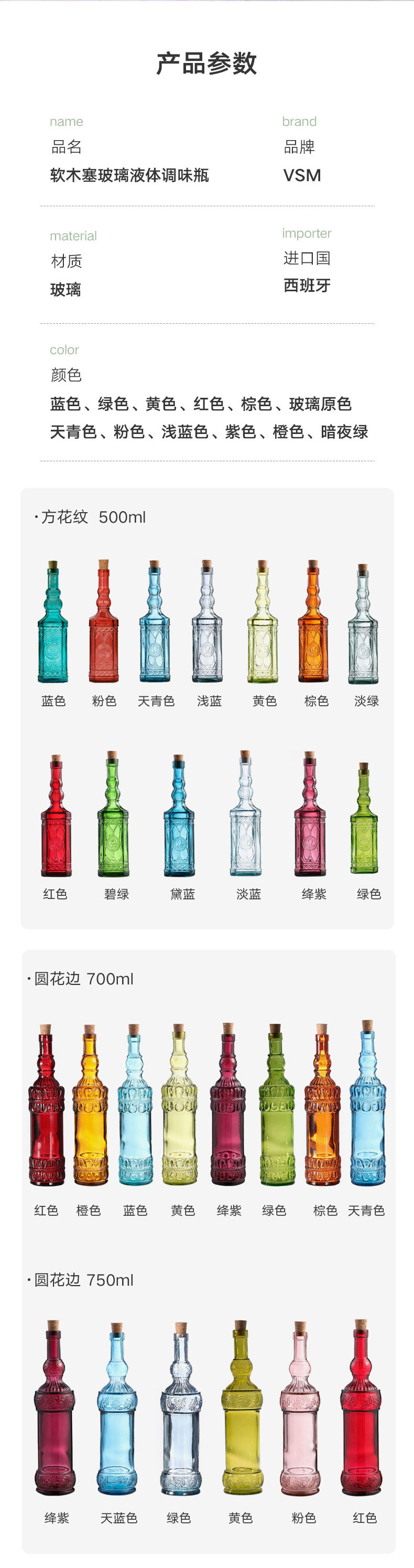 软木塞玻璃液体调味瓶 螺纹状 原色 400ml