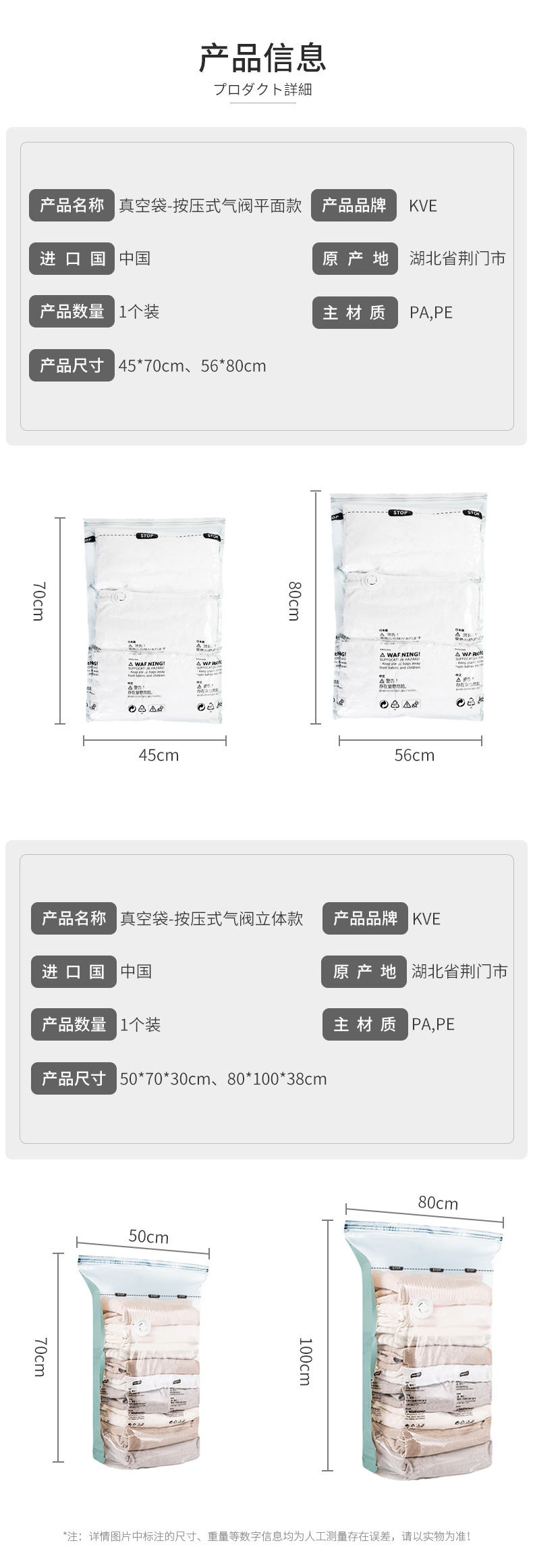 真空袋-按压式气阀立体款 80*100*38