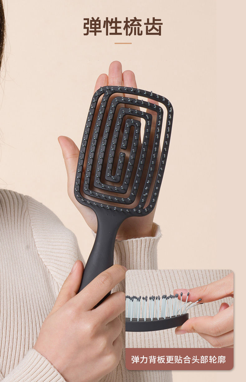 镂空按摩梳 方形尼龙款 蓝灰色