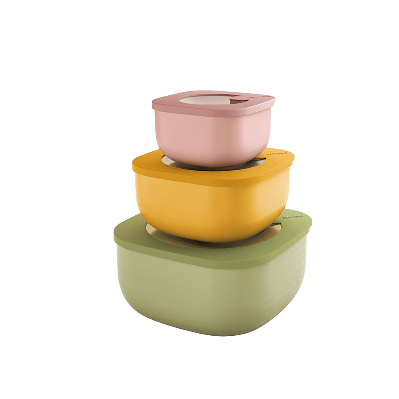 炫彩饭盒储物盒 三件套 粉黄绿 19.5*19.5*h9.3cm (450/975/1900ml)