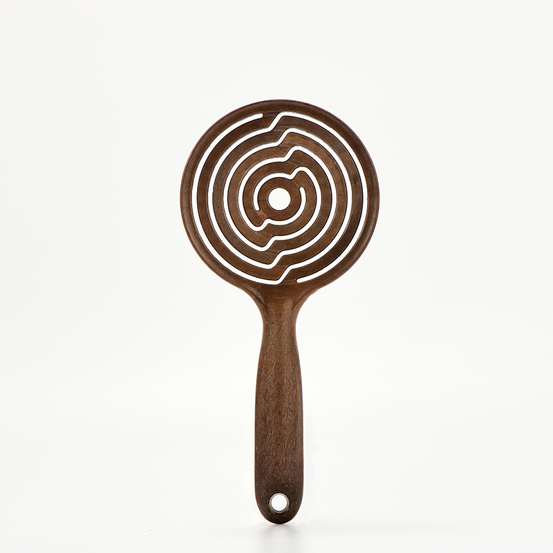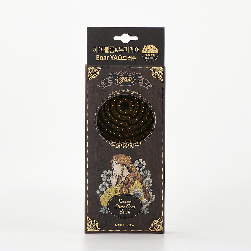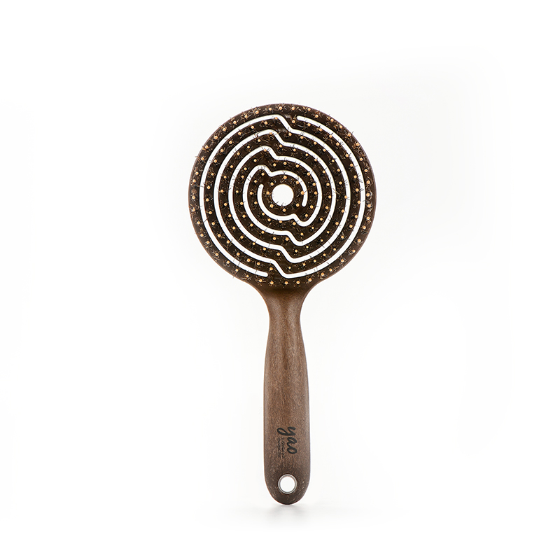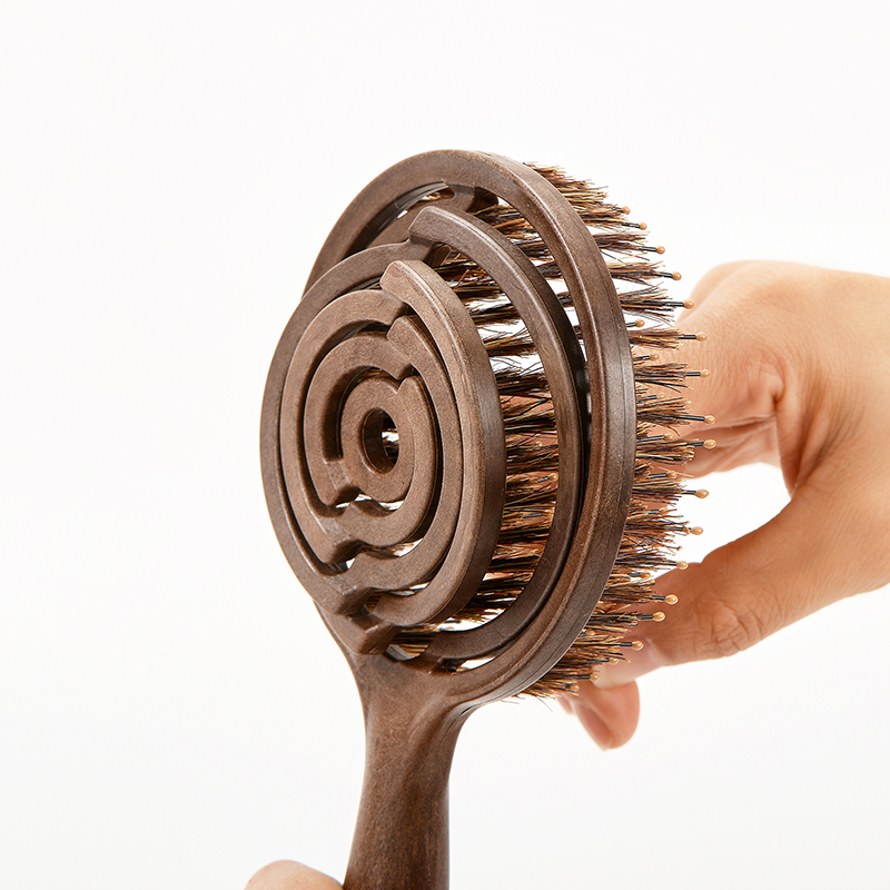 镂空按摩梳 圆形猪鬃毛高弹款 深咖色