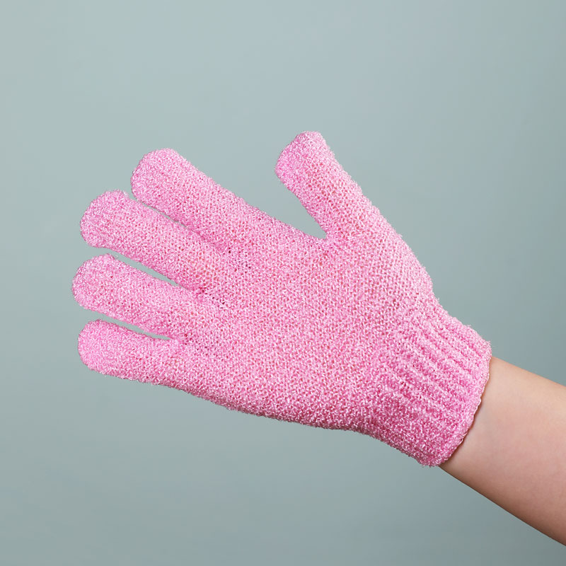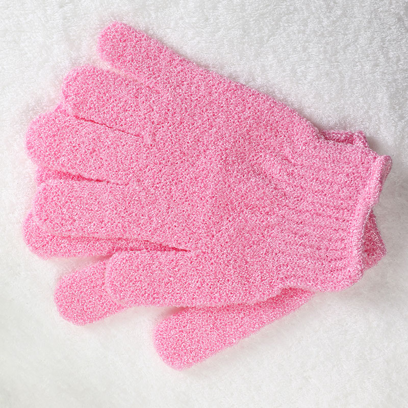 去角质沐浴手套 五指搓澡巾 粉色 2只装
