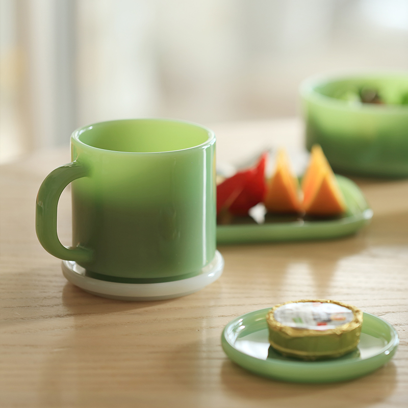复古牛奶玻璃马克杯 1对 粉色