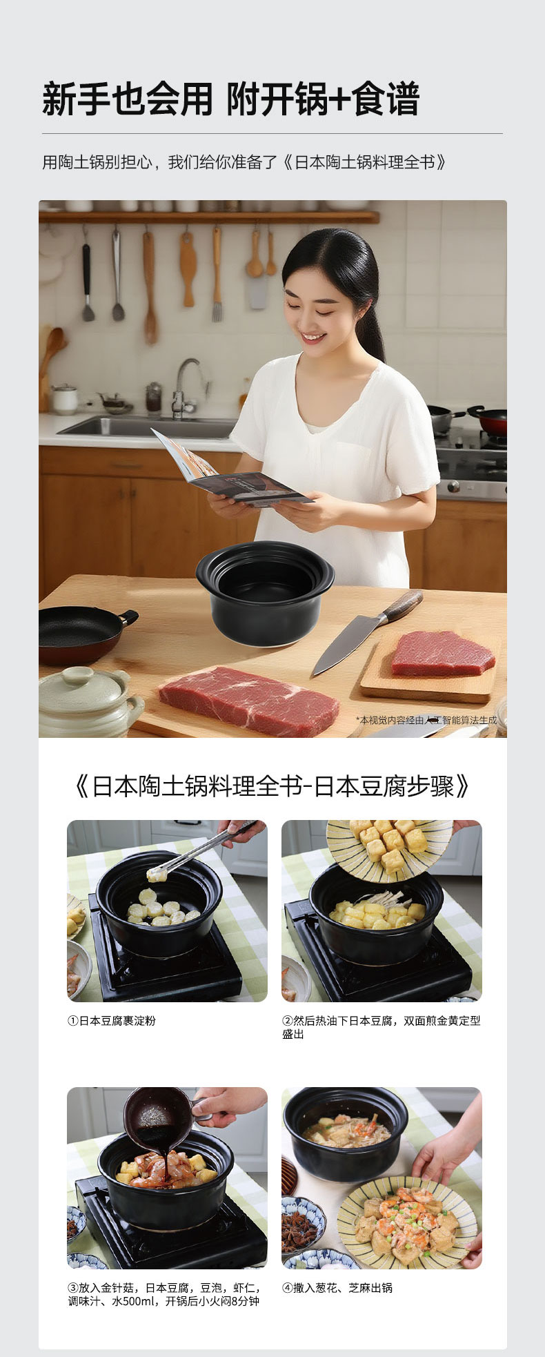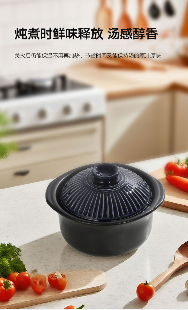 菊花多功能陶土锅 2合 1.2L 蓝色 21.5cm x H15cm