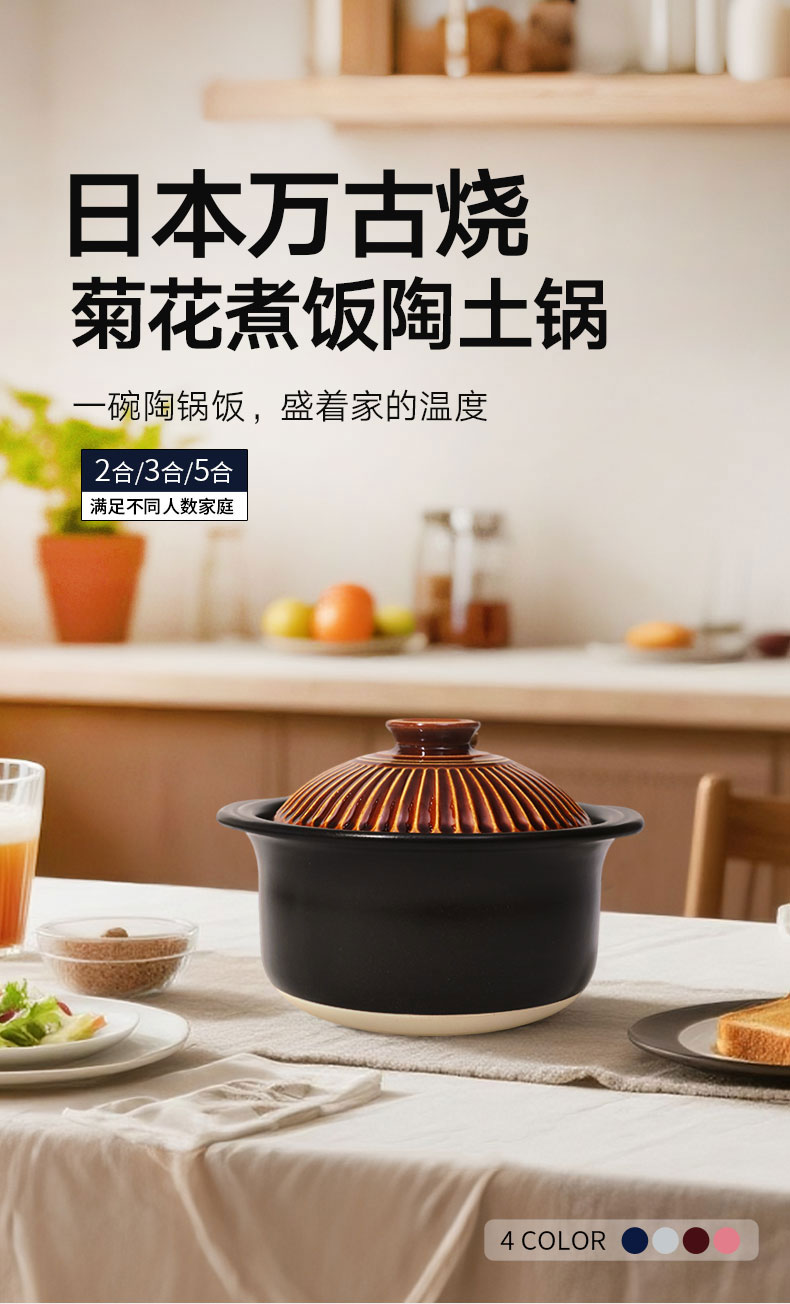 菊花多功能陶土锅 3合 1.8L 棕色 25cm x H16cm