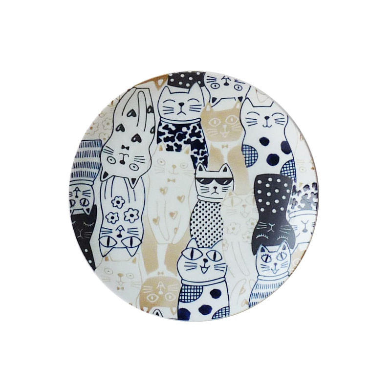 日式猫咪 大盘蓝色6个 23.5cm