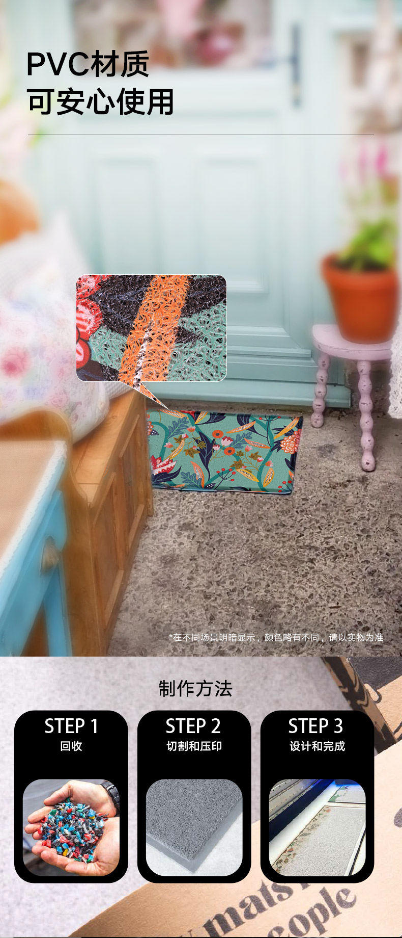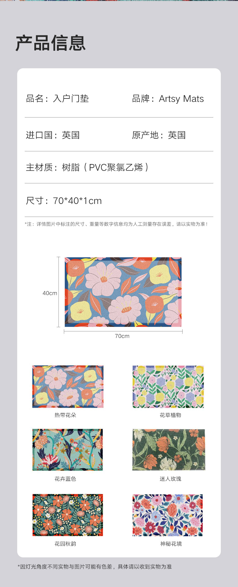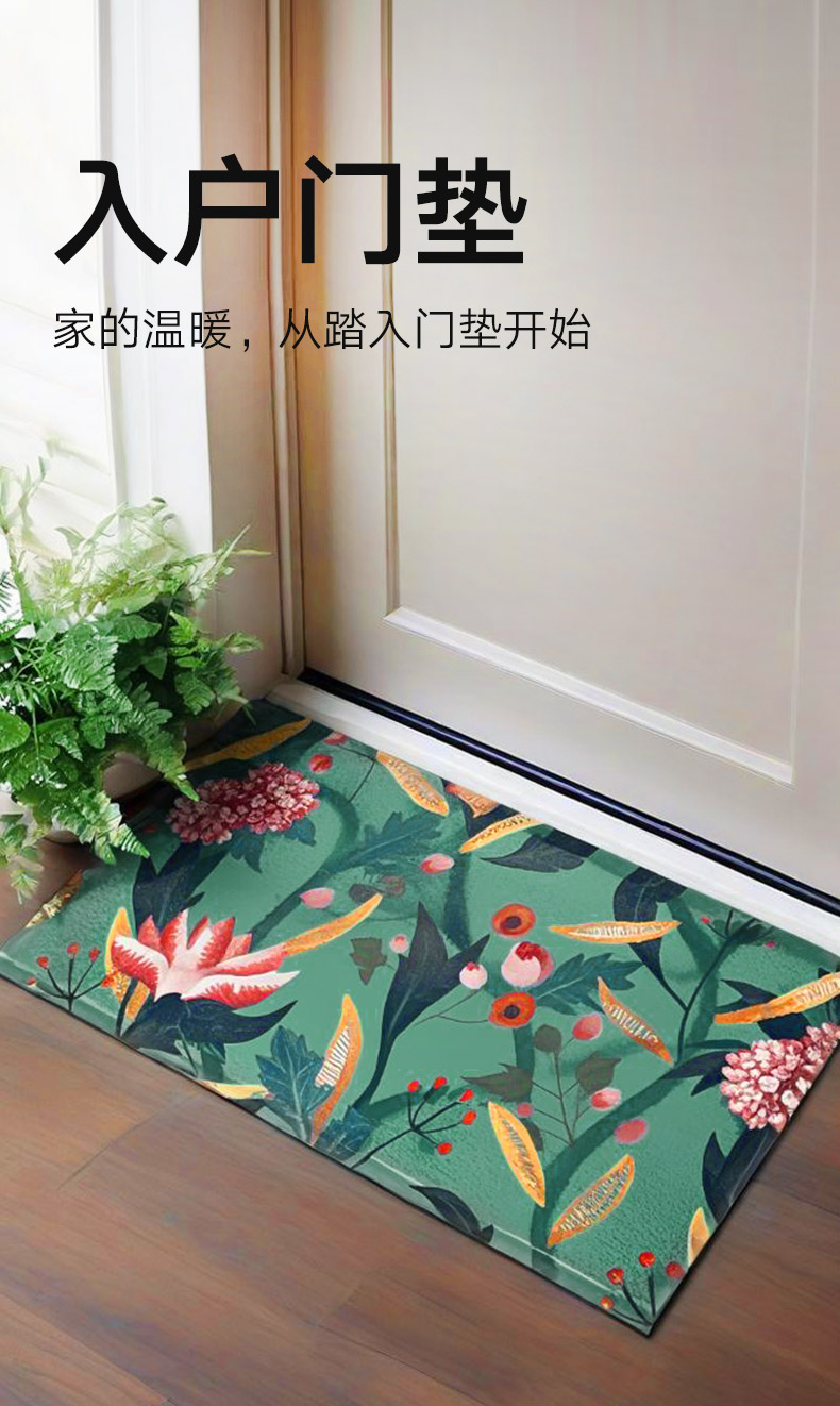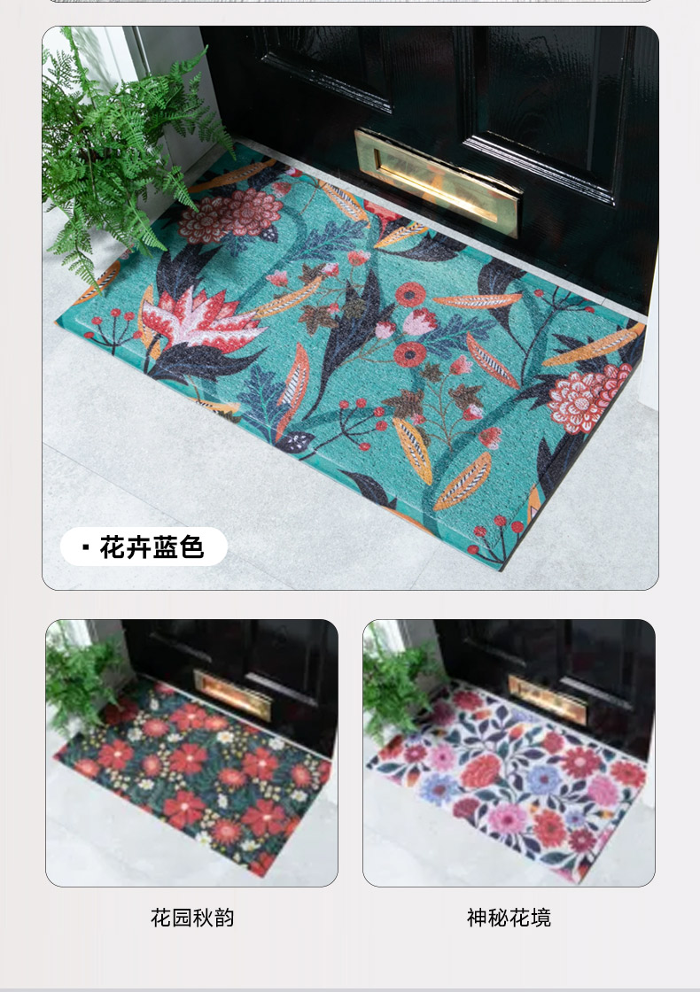 入户门垫 花卉蓝色 70*40cm