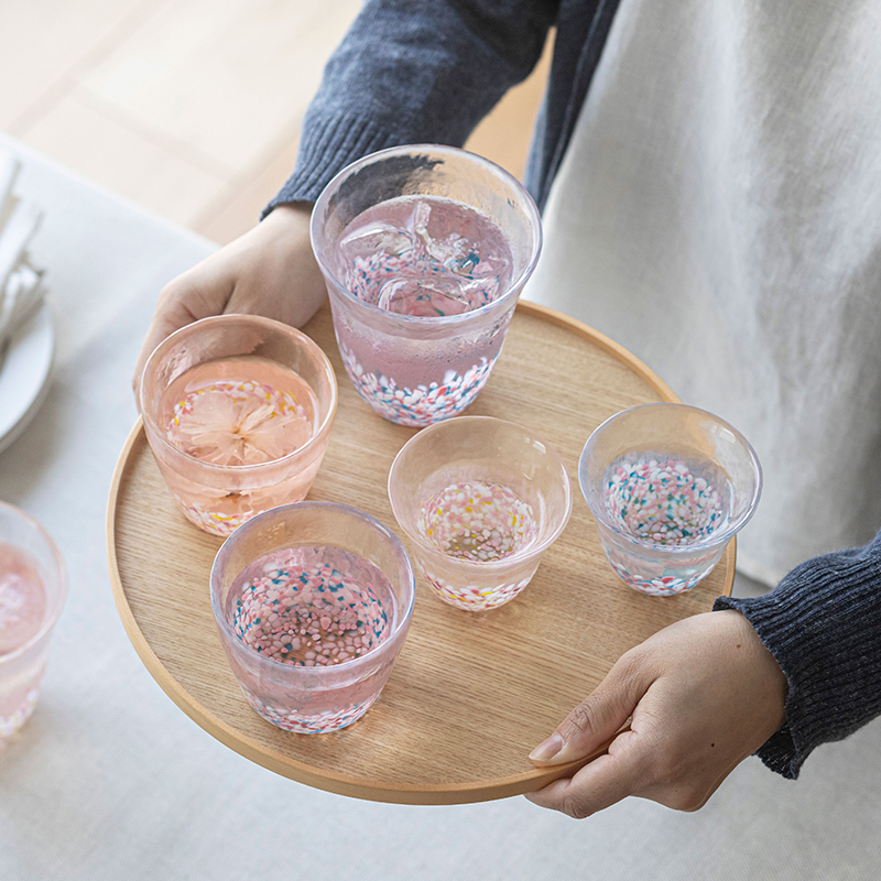 津轻纯手工创意彩色玻璃杯 粉色 260ml