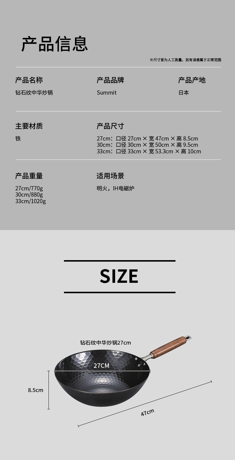 钻石纹中华炒锅 30cmx H9.5cm