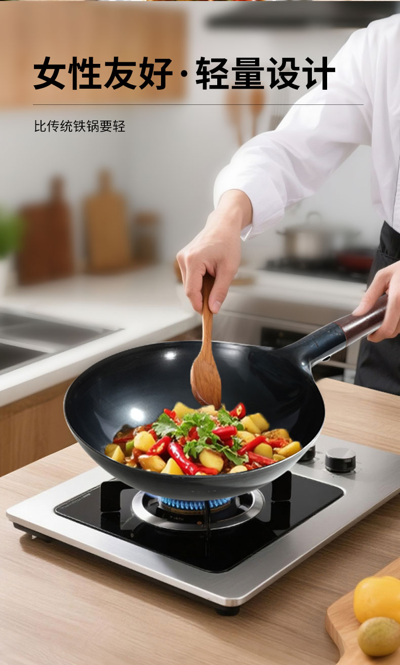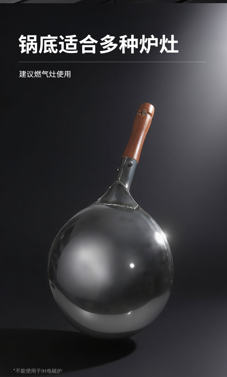 木柄圆底中华炒锅 33cmx H10cm