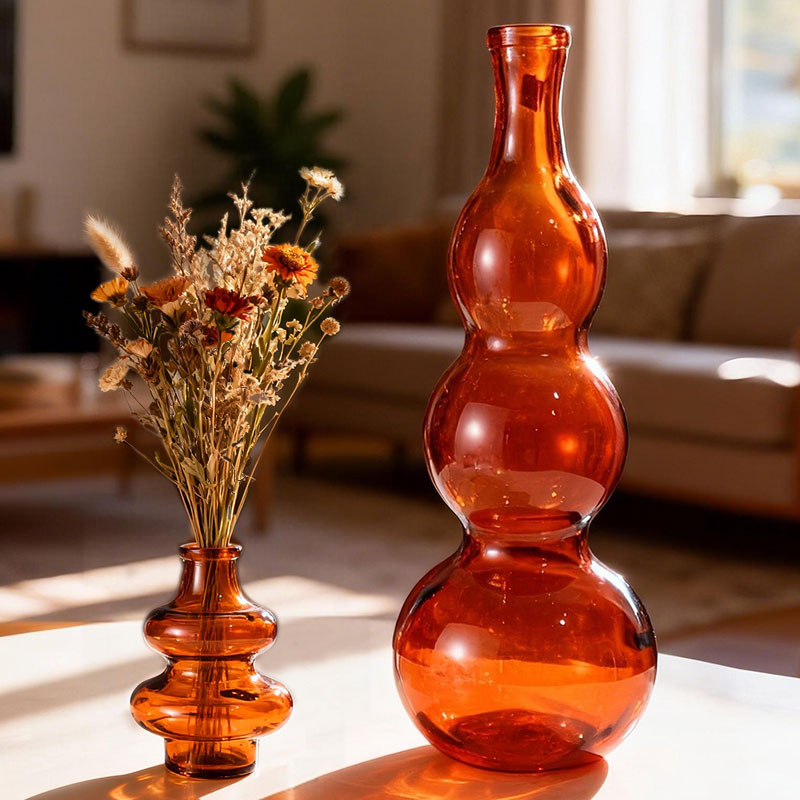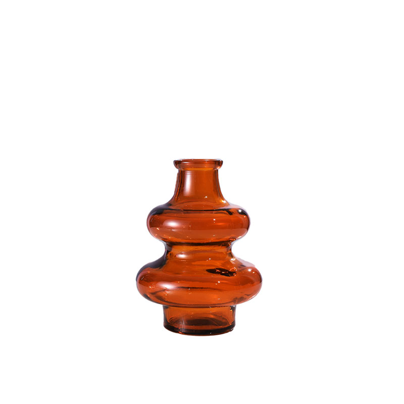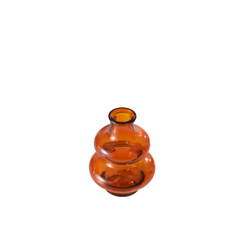 玻璃扁球双层花瓶 橙色 h16cm