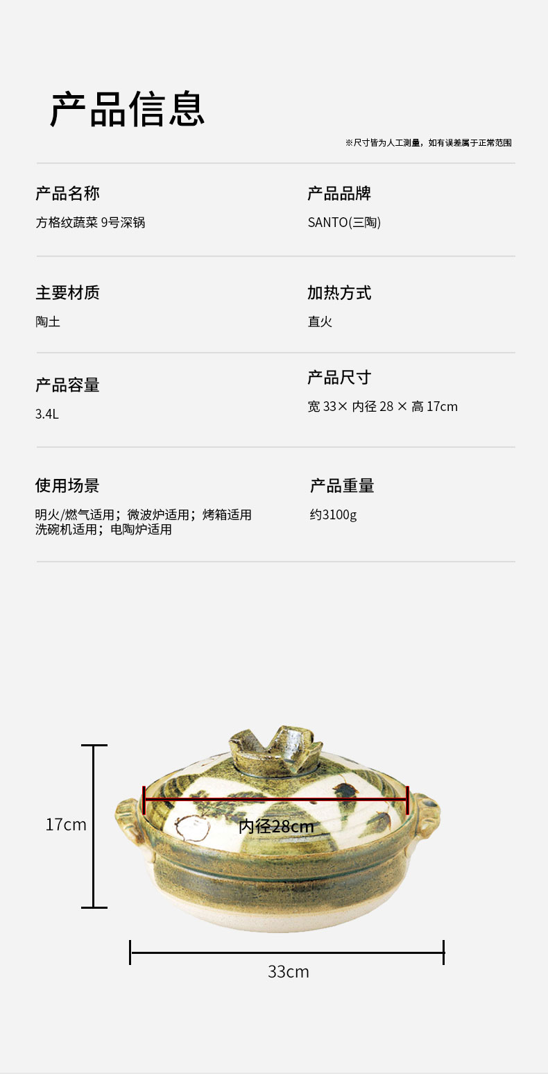 方格纹蔬菜 9号深锅3.4L 28cm×H11cm