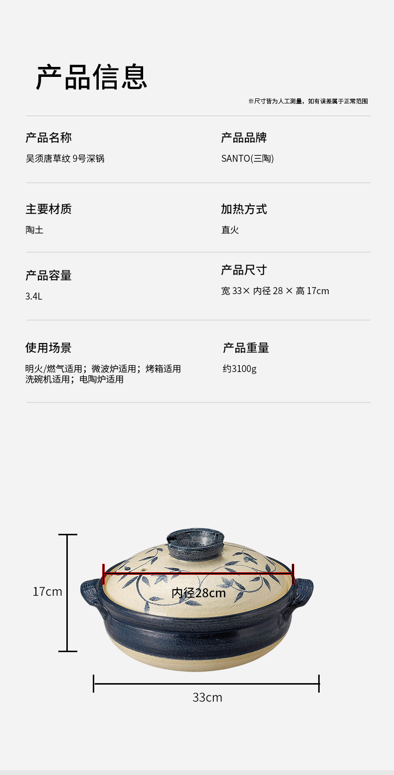 吴须唐草纹 9号深锅3.4L 28cm×H11cm