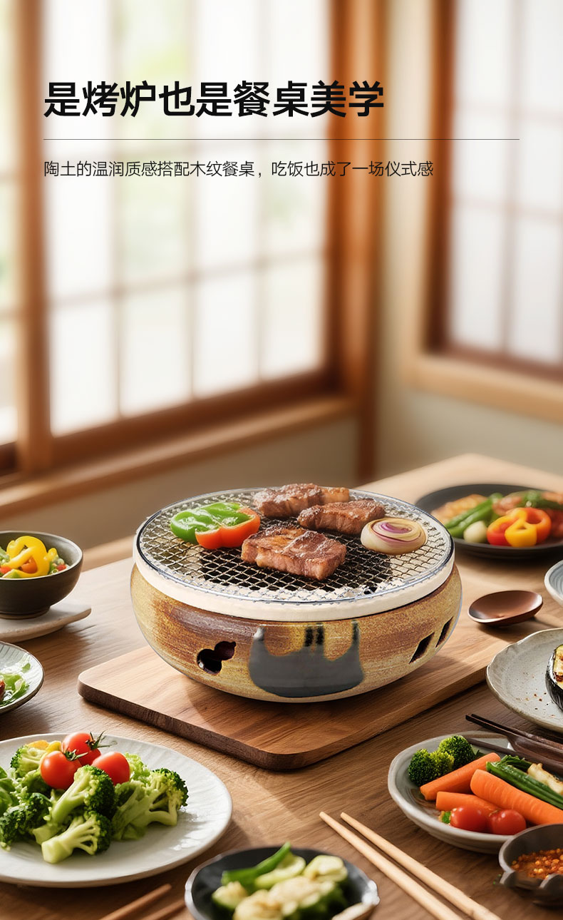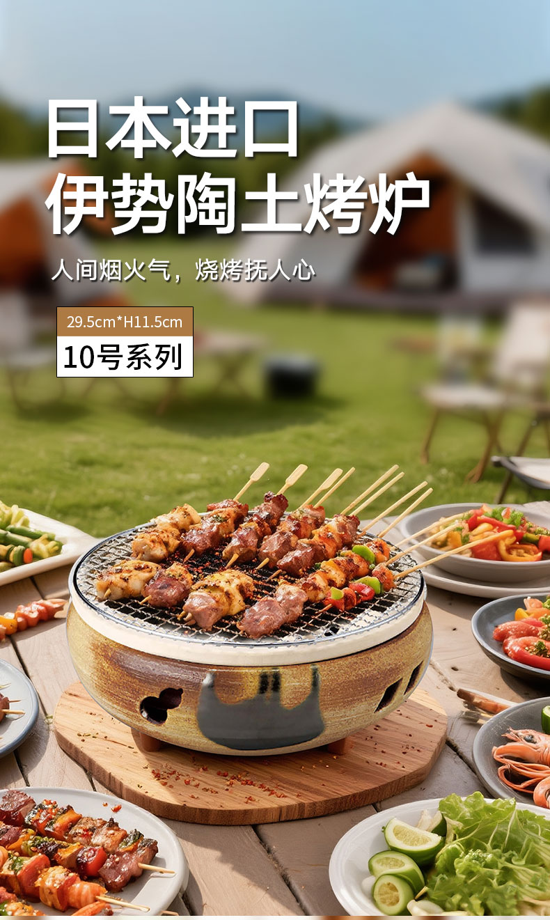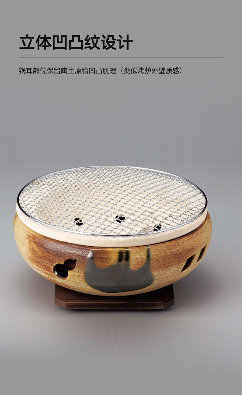 伊势陶土烤炉 10号 29.5cmx H11.5cm(附金属网和底座)