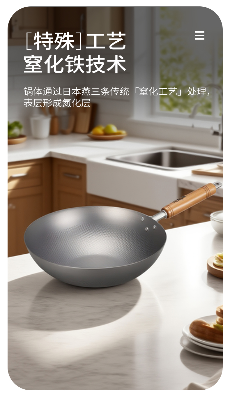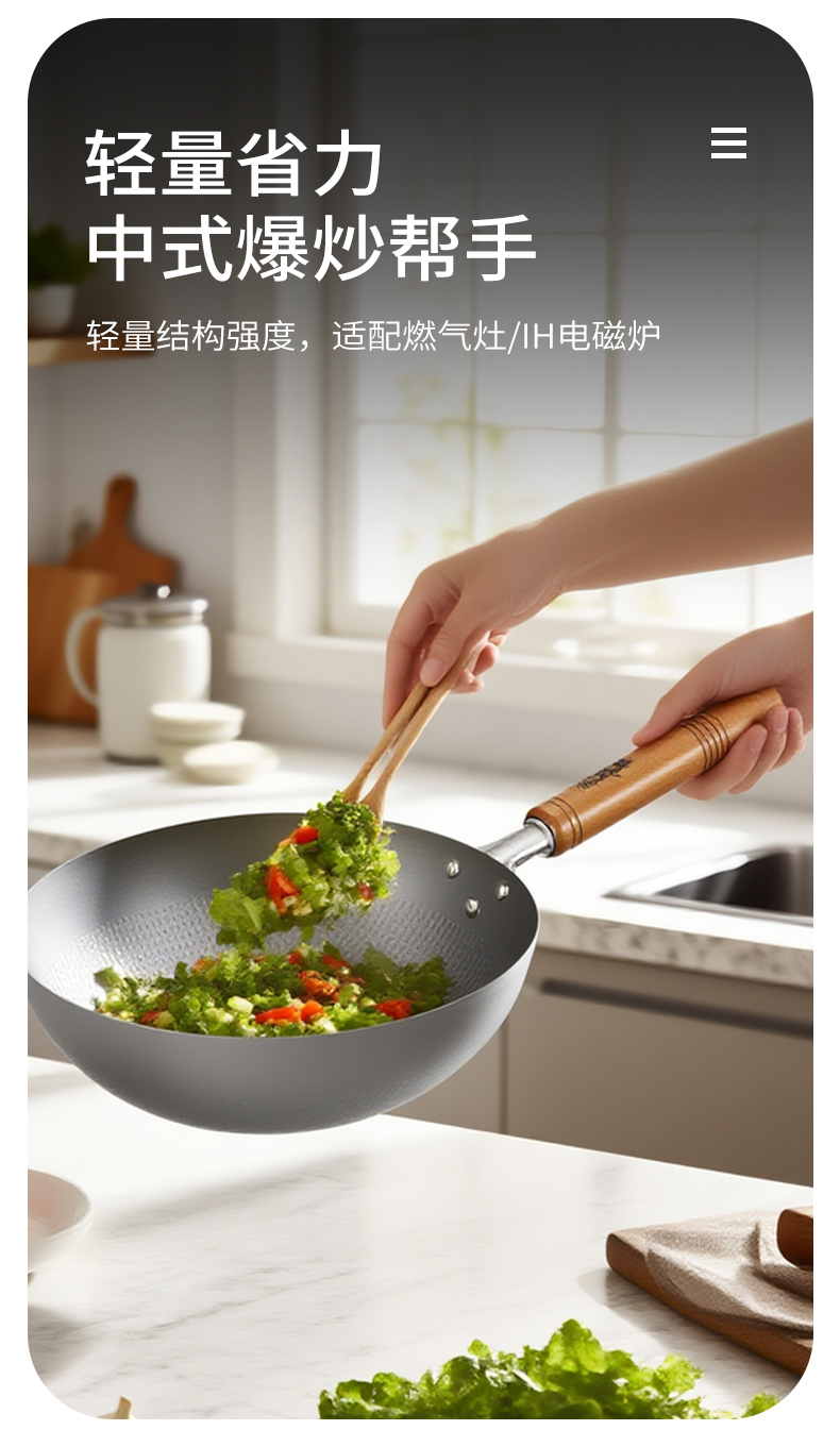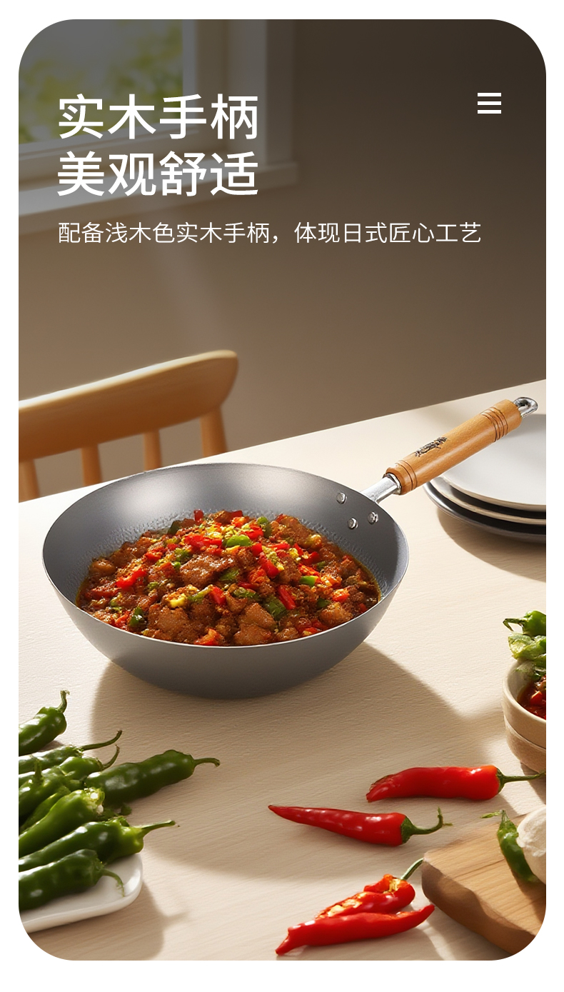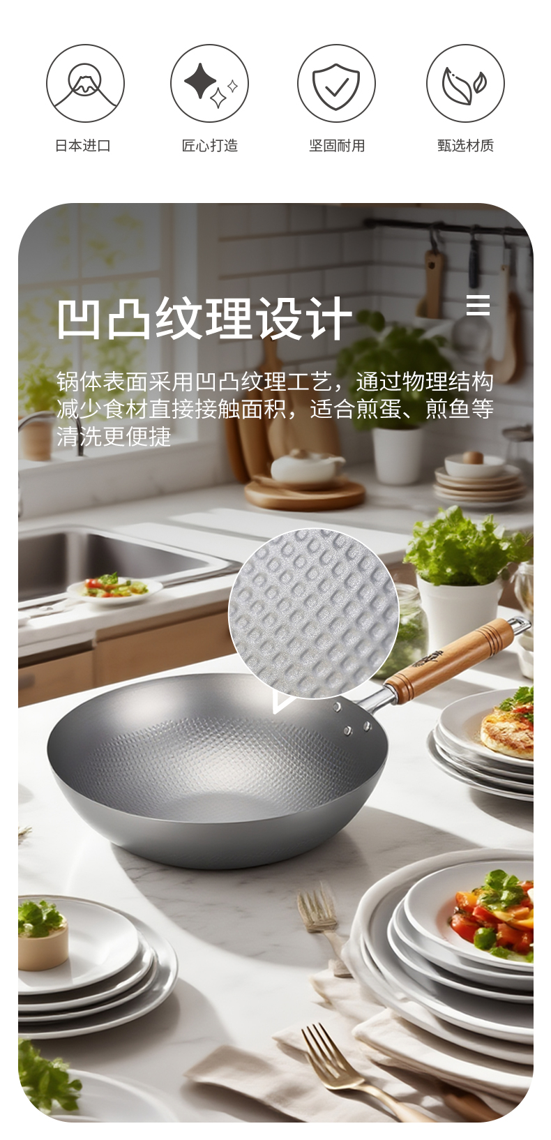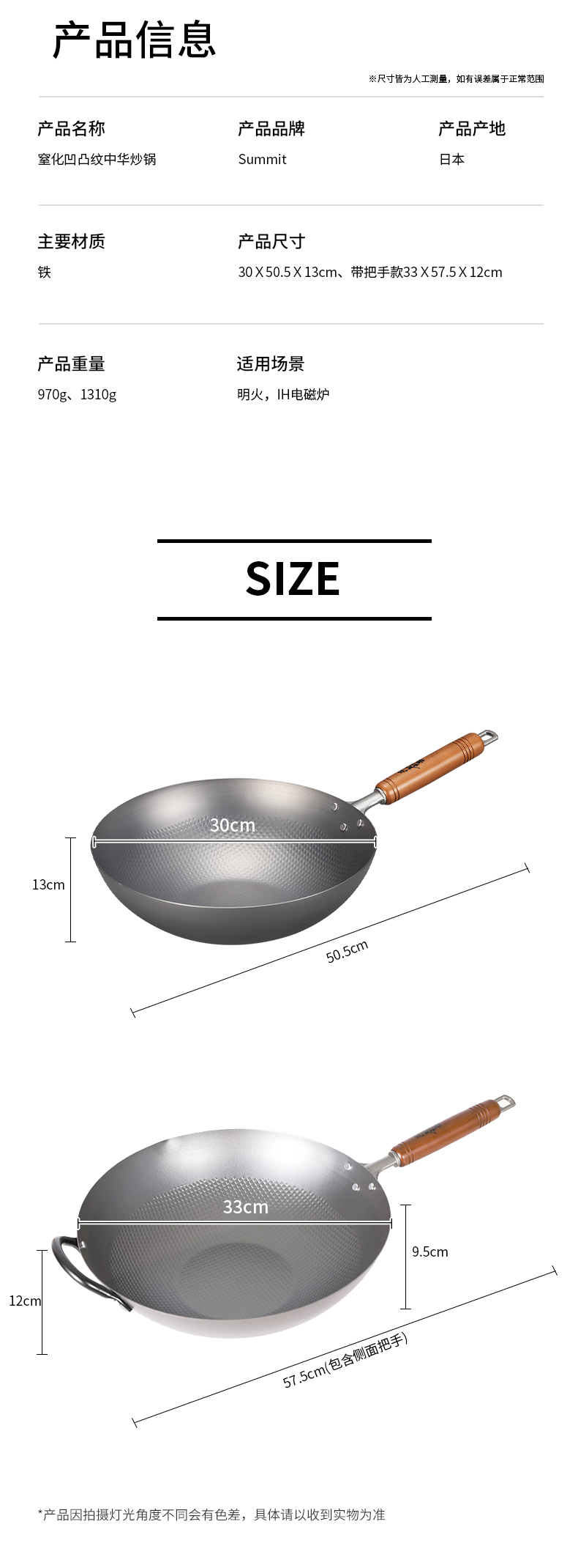 窒化凹凸纹中华炒锅 带把手 33cmx H9.5cm