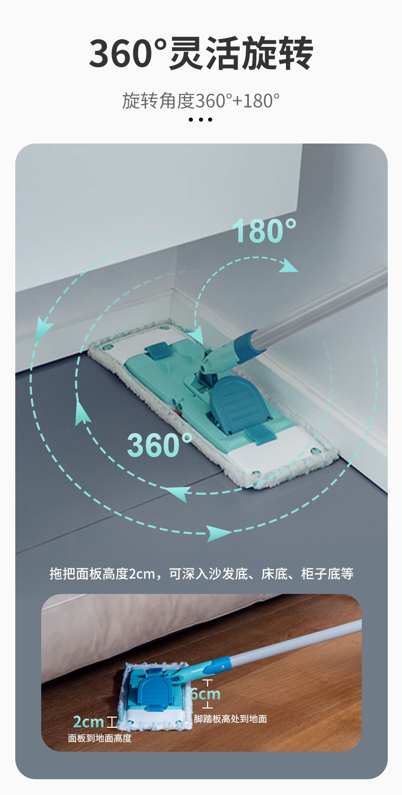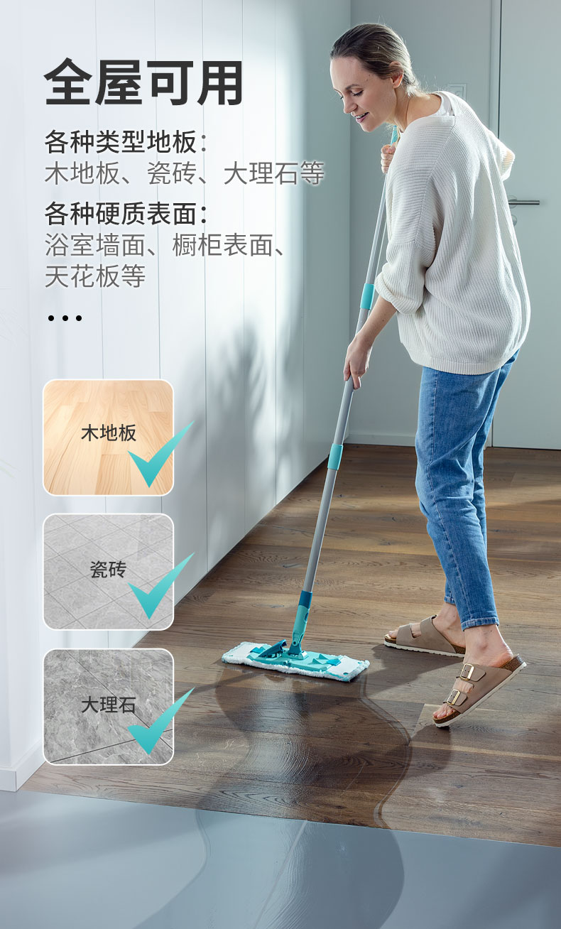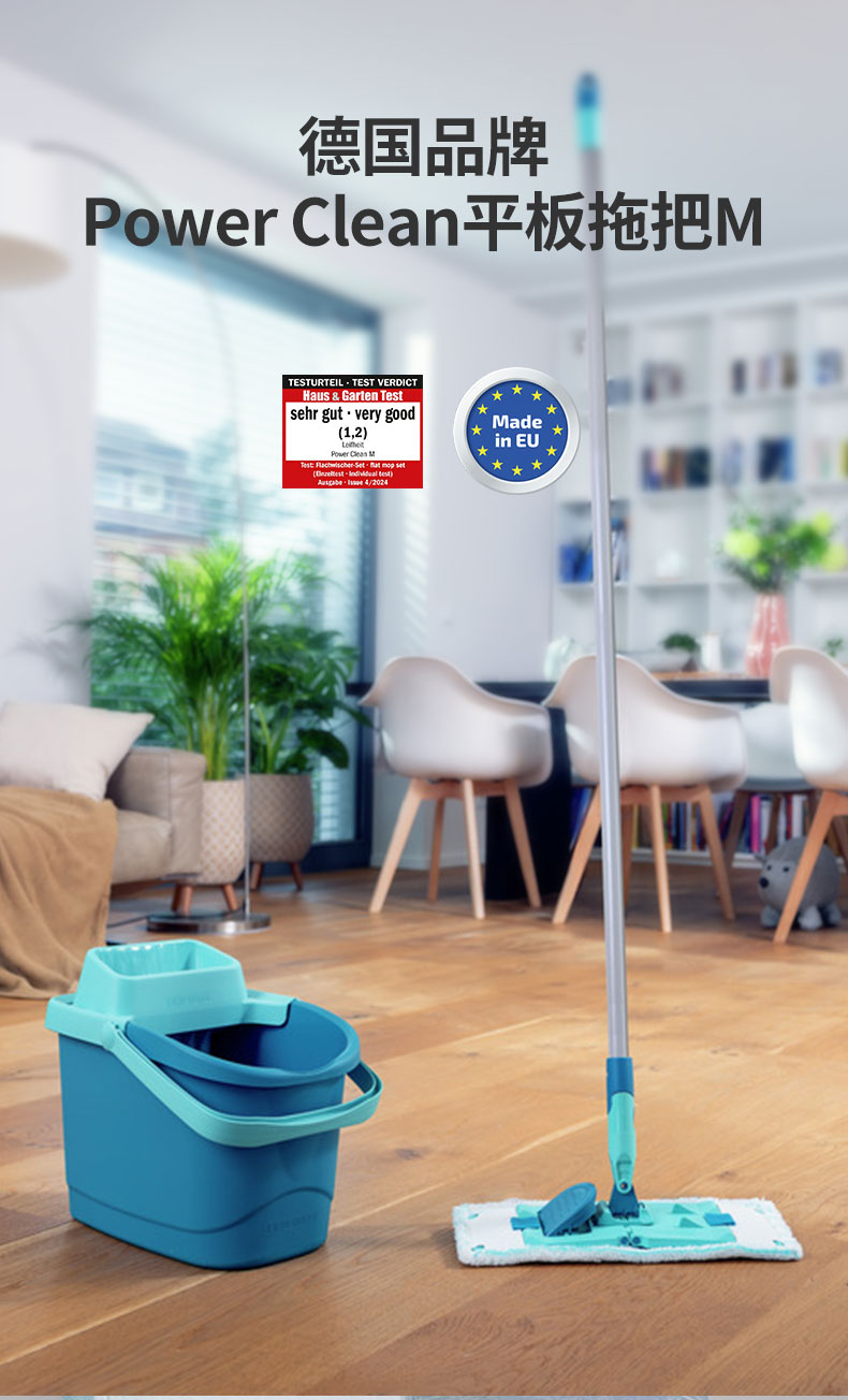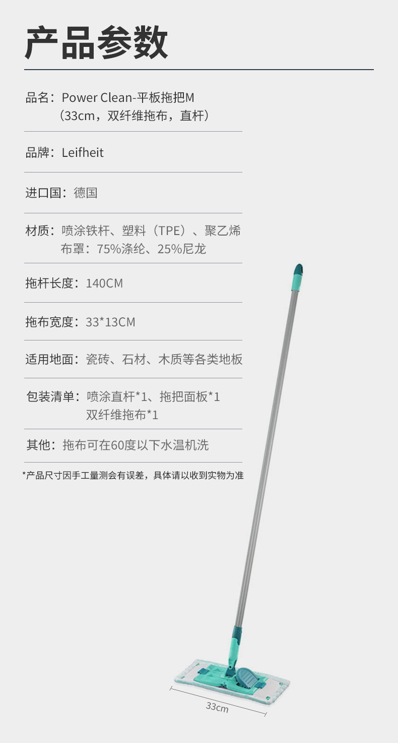 Power Clean-平板拖把M(33cm,双纤维拖布,直杆)