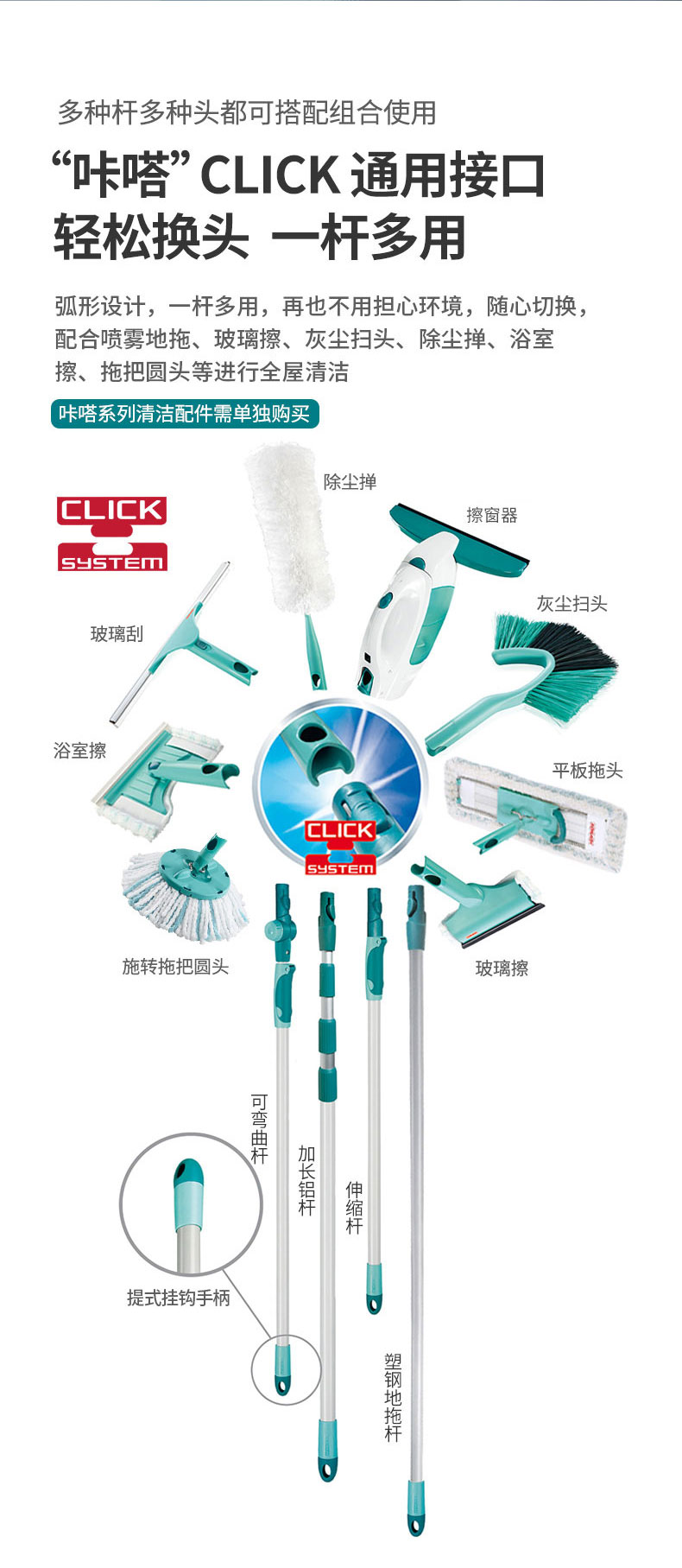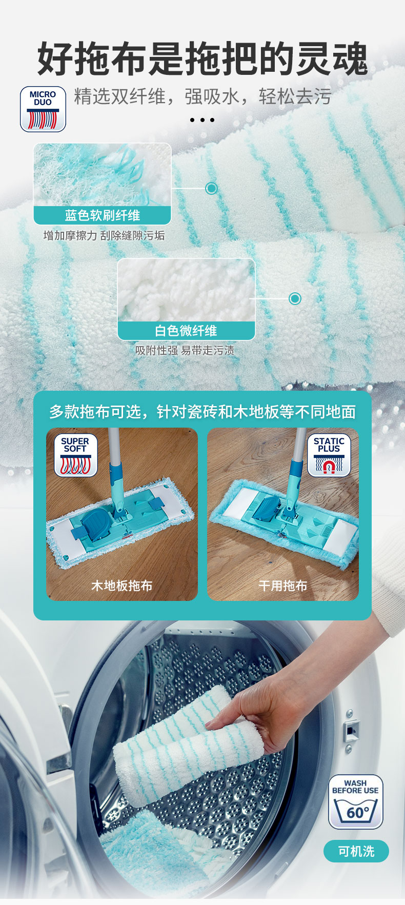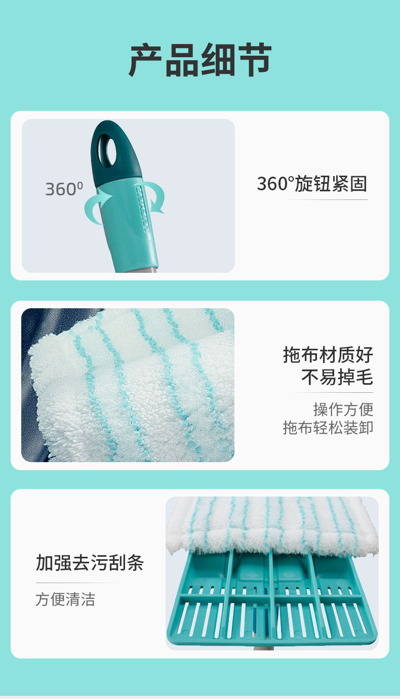 Power Clean-平板拖把M(33cm,双纤维拖布,直杆)