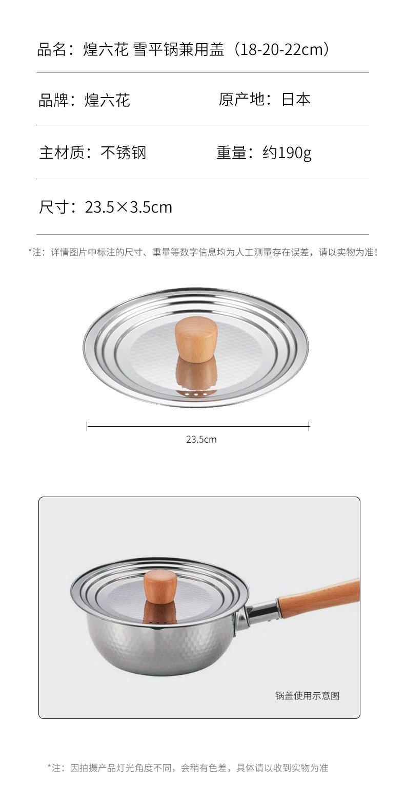 煌六花 雪平锅兼用盖(18-20-22cm)