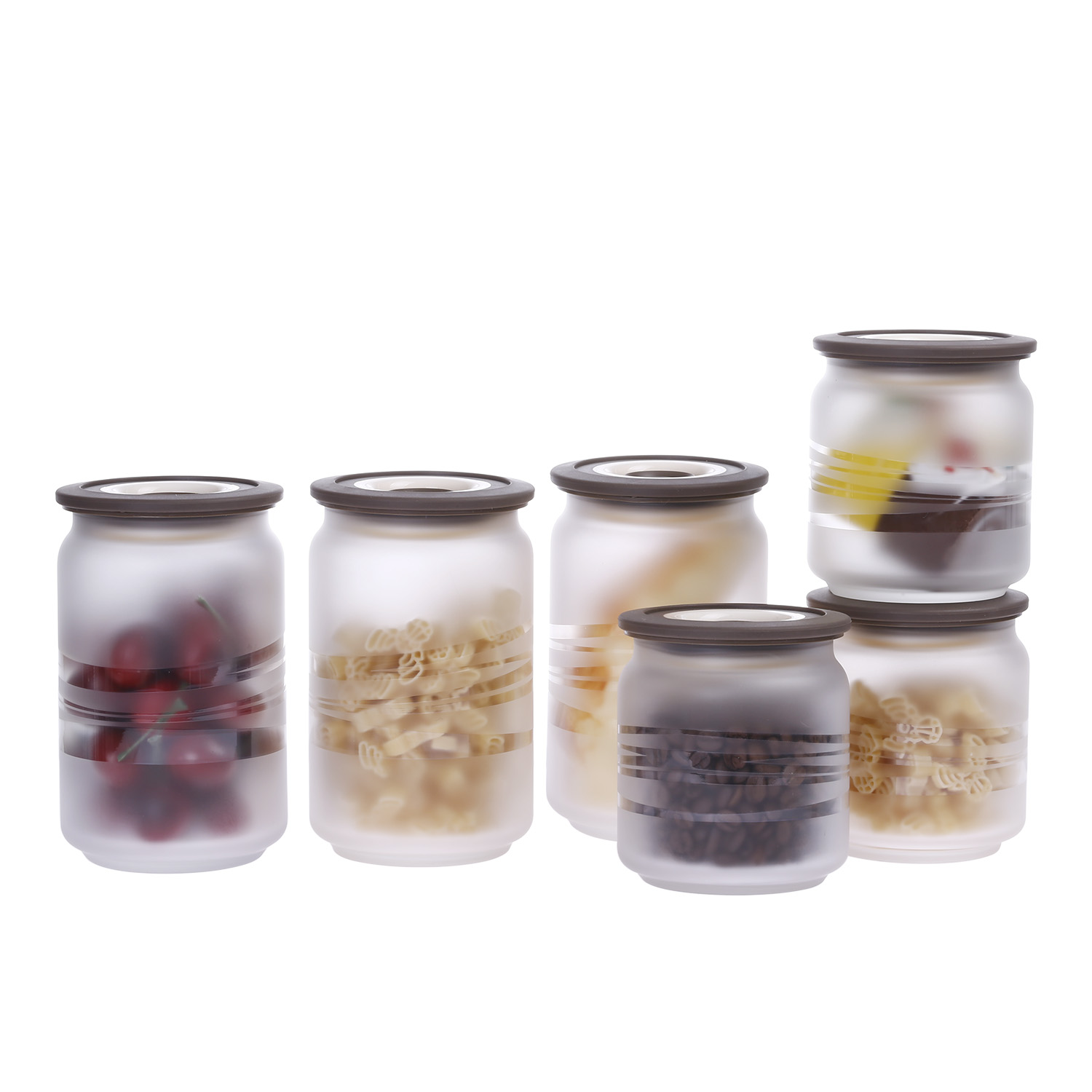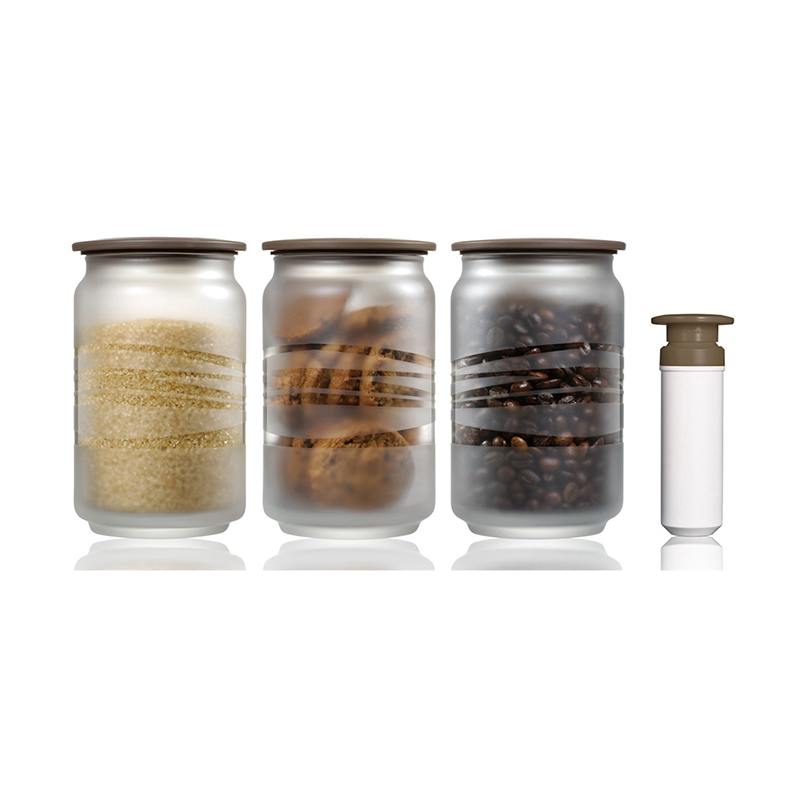 真空保鲜玻璃罐750ml*3套装带抽气棒 磨砂款咖色盖