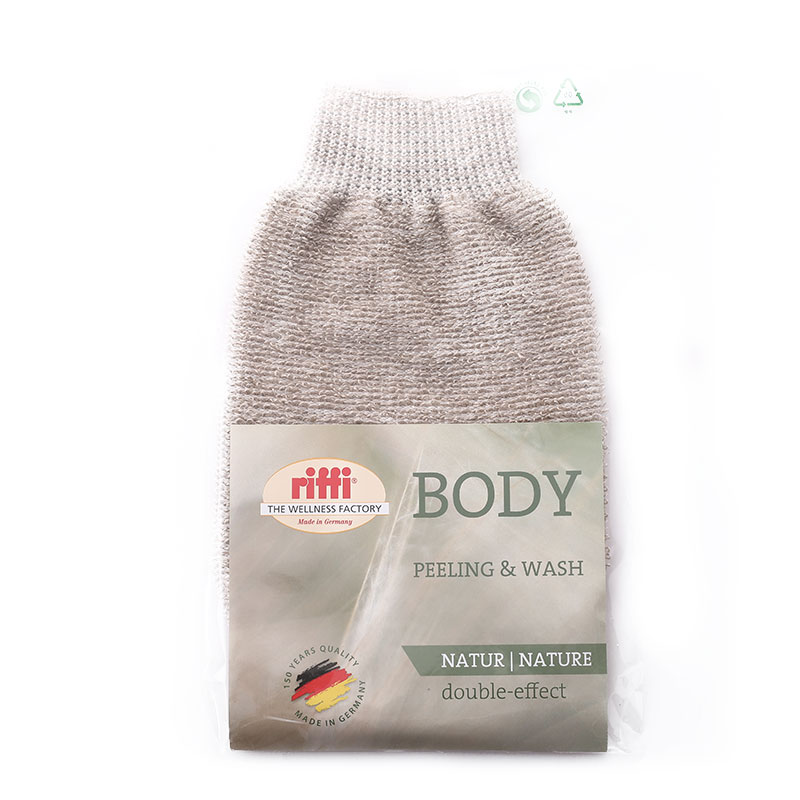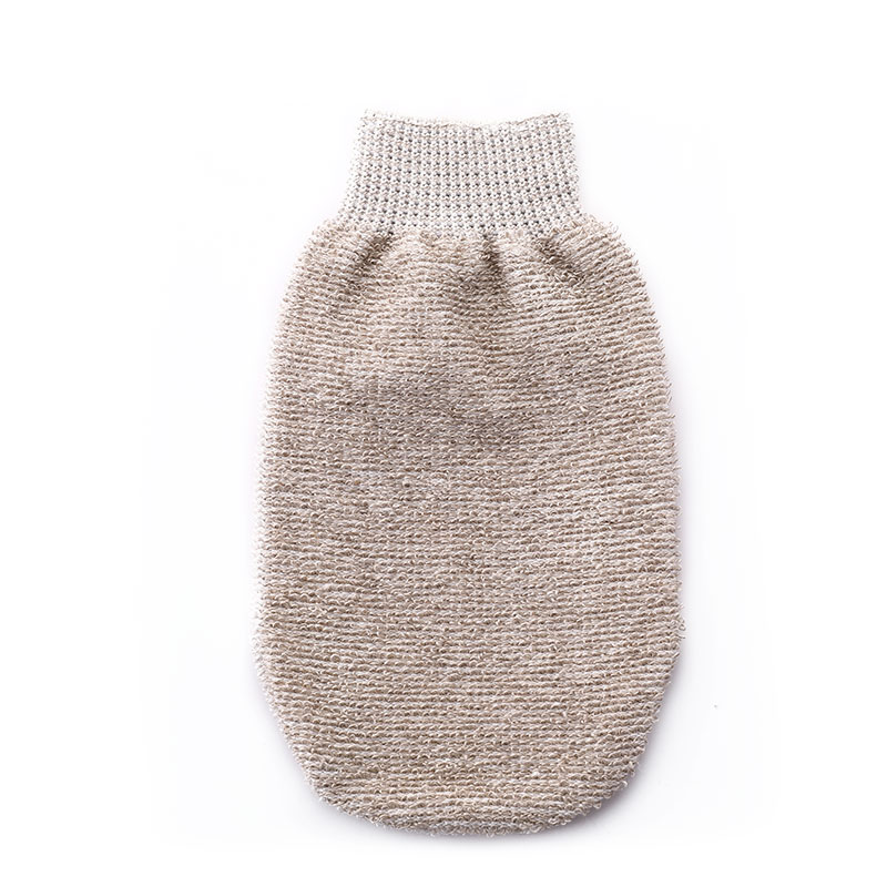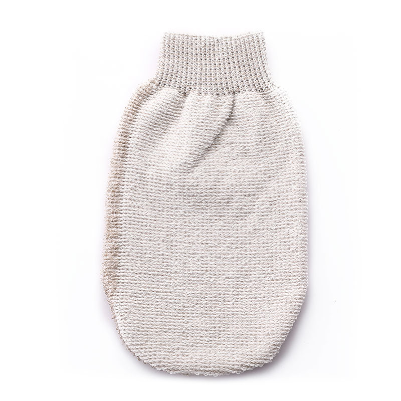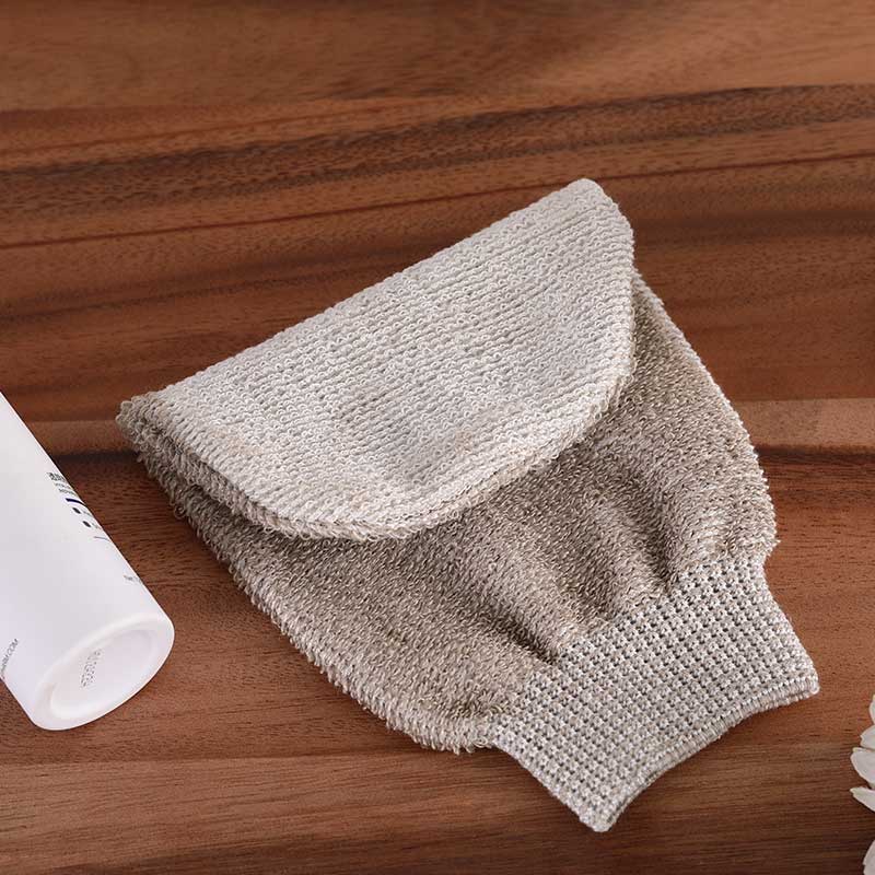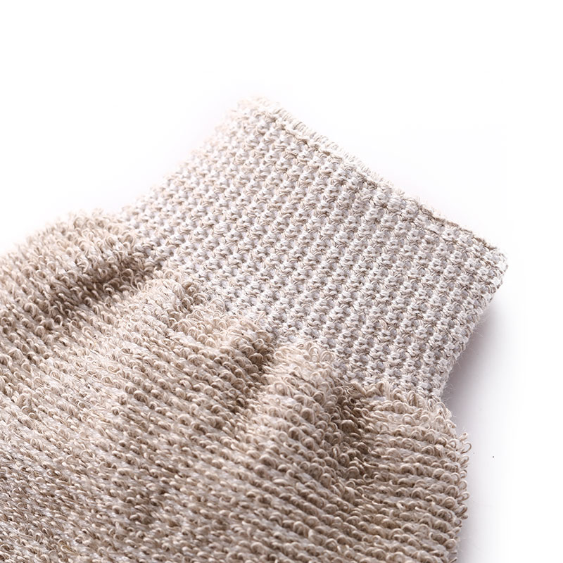 双面沐浴按摩手套 米灰色 有机麻竹纤维 中度