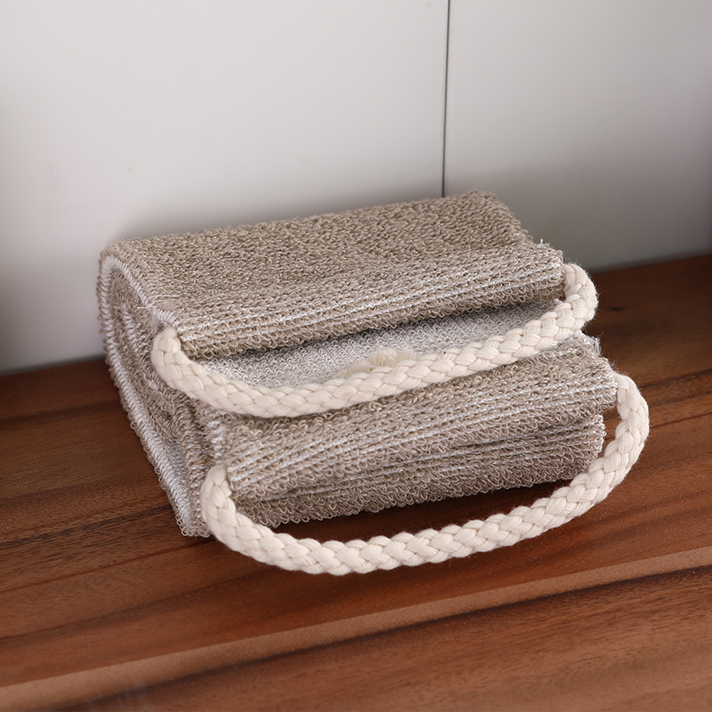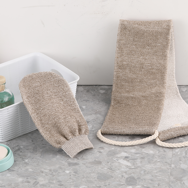 双面沐浴按摩长巾 米灰色 有机麻竹纤维 中度