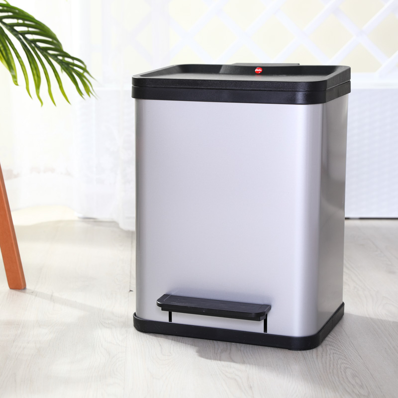 方形静音分类垃圾桶(2个9L内筒) 银色