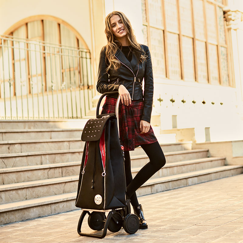 冠军六轮可折叠购物车 黑色铆钉 43L