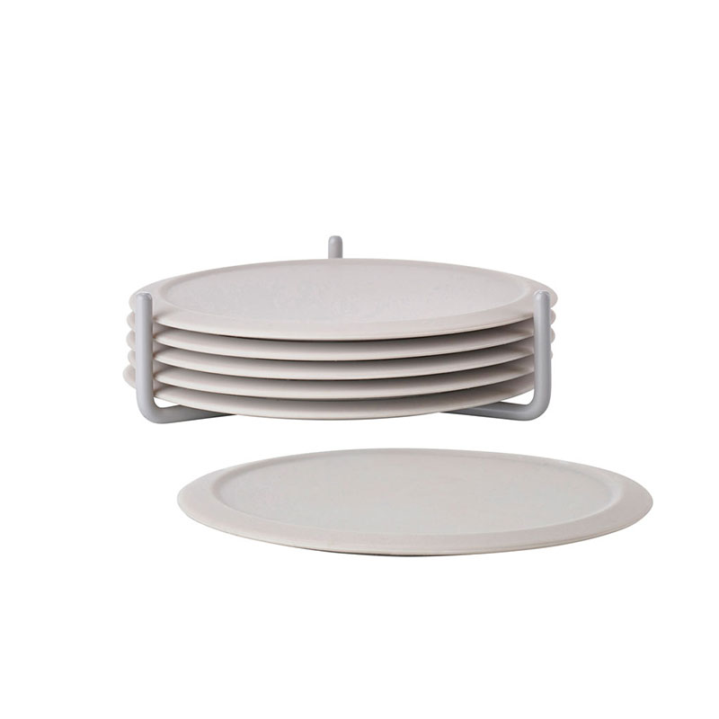 硅胶圆杯垫套装(带金属收纳架) 暖灰色 10xh3.1 cm