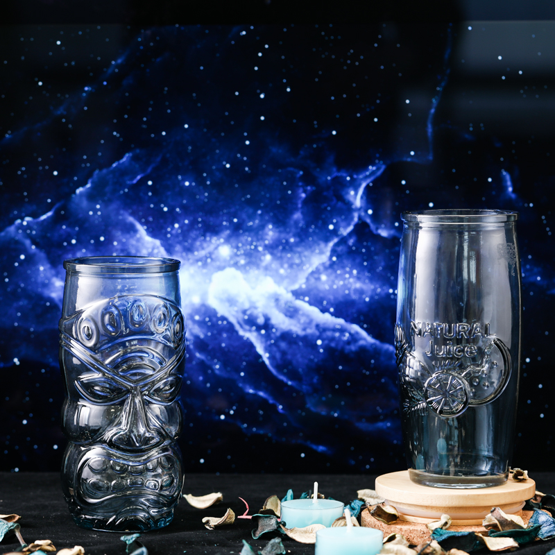 玻璃杯 图腾 蓝灰 550ml