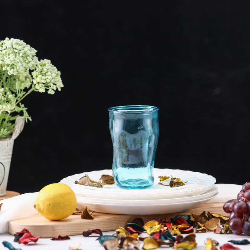 不规则玻璃杯 高款 天青色 350ml