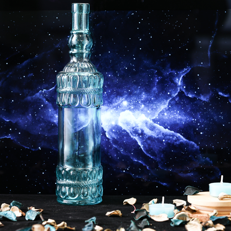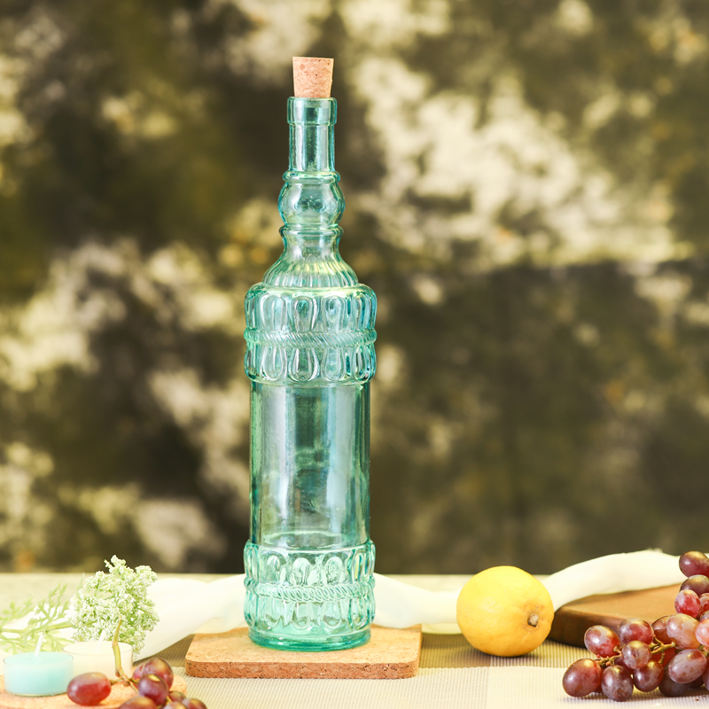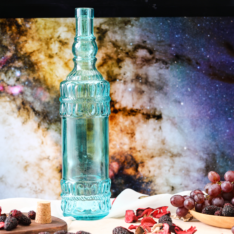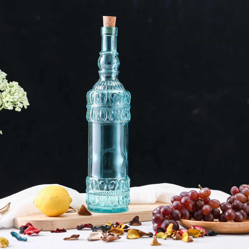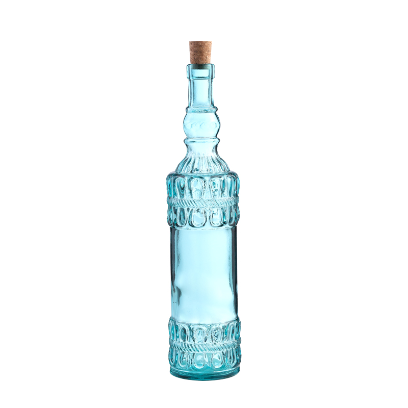软木塞玻璃液体调味瓶 圆花边 蓝色 700ml