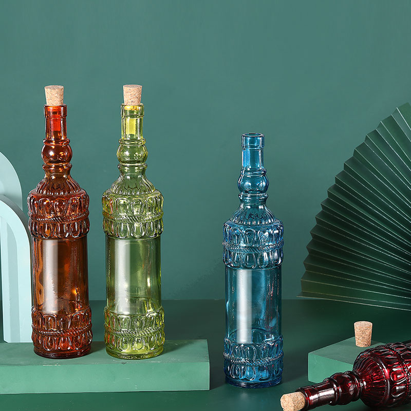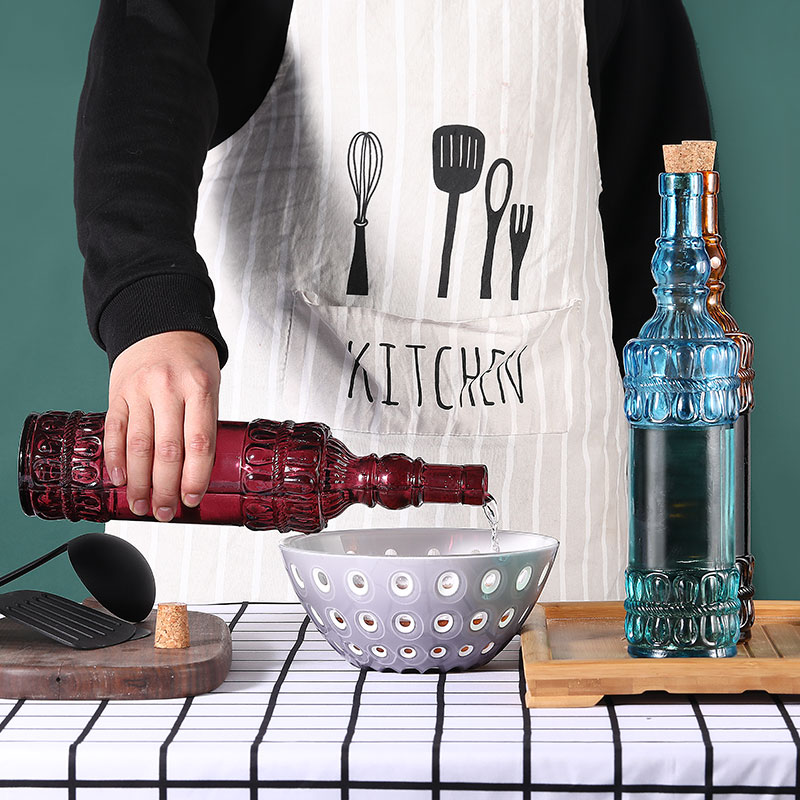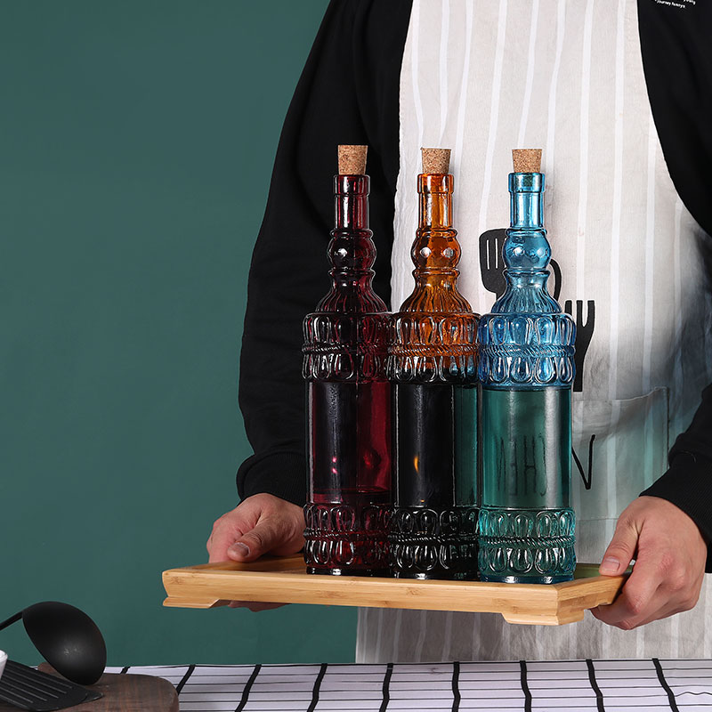 软木塞玻璃液体调味瓶 圆花边 橙色 700ml