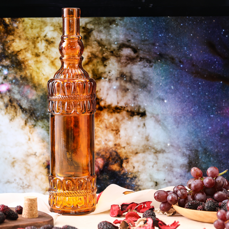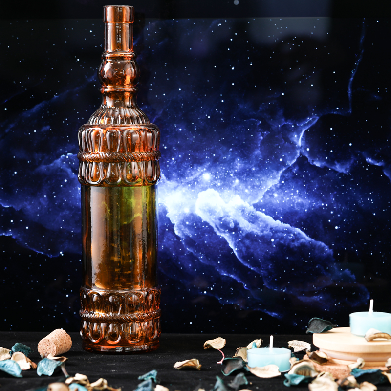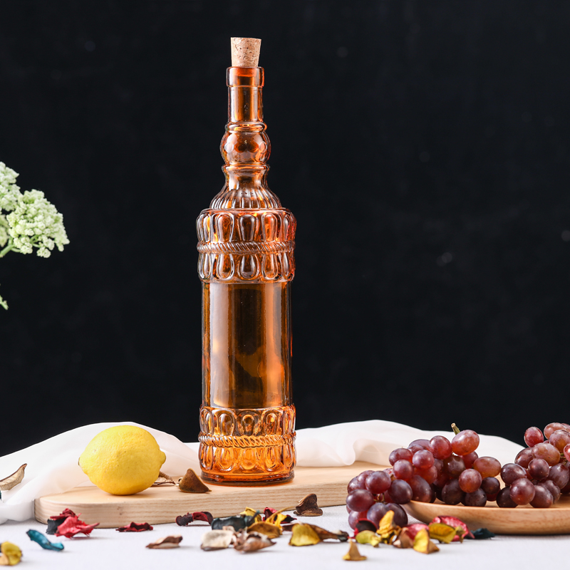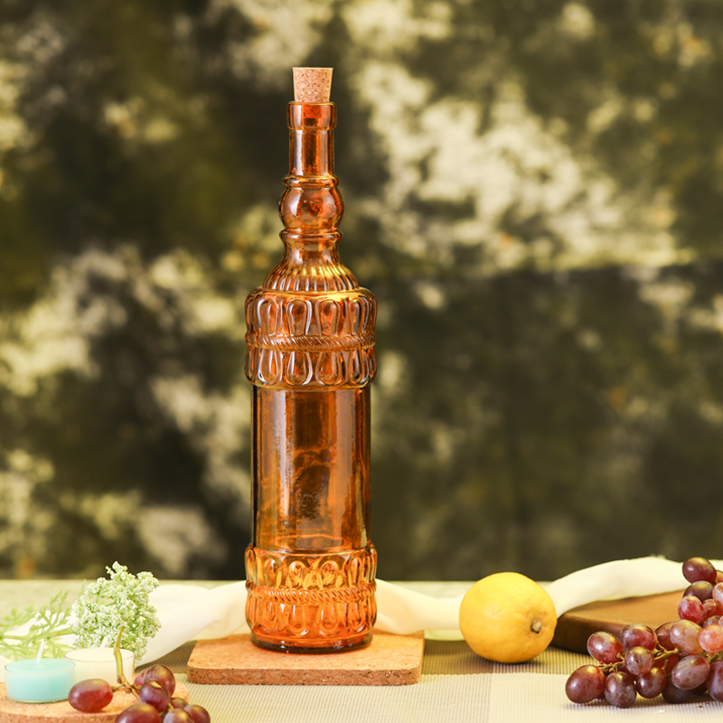 软木塞玻璃液体调味瓶 圆花边 棕色 700ml