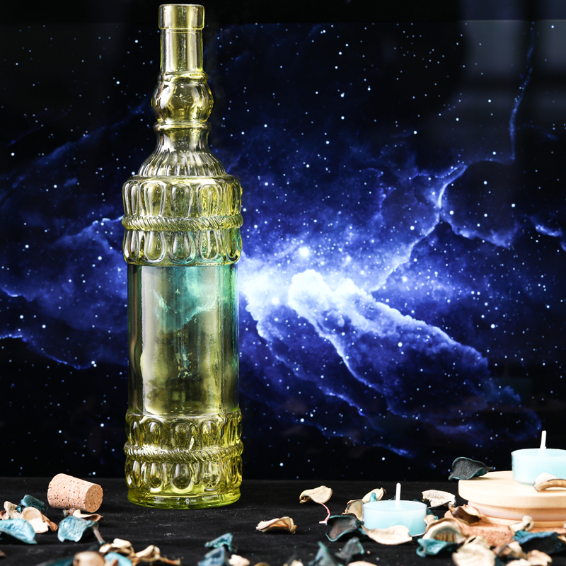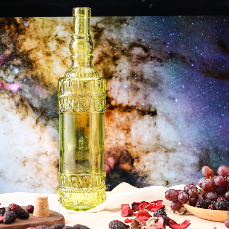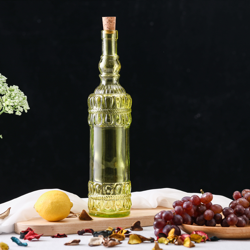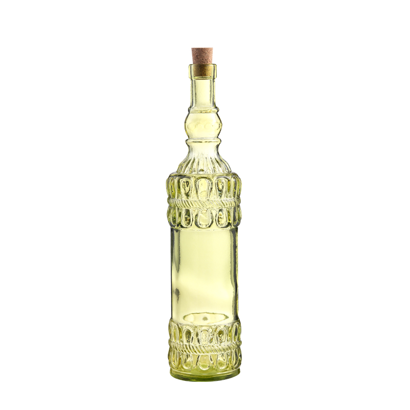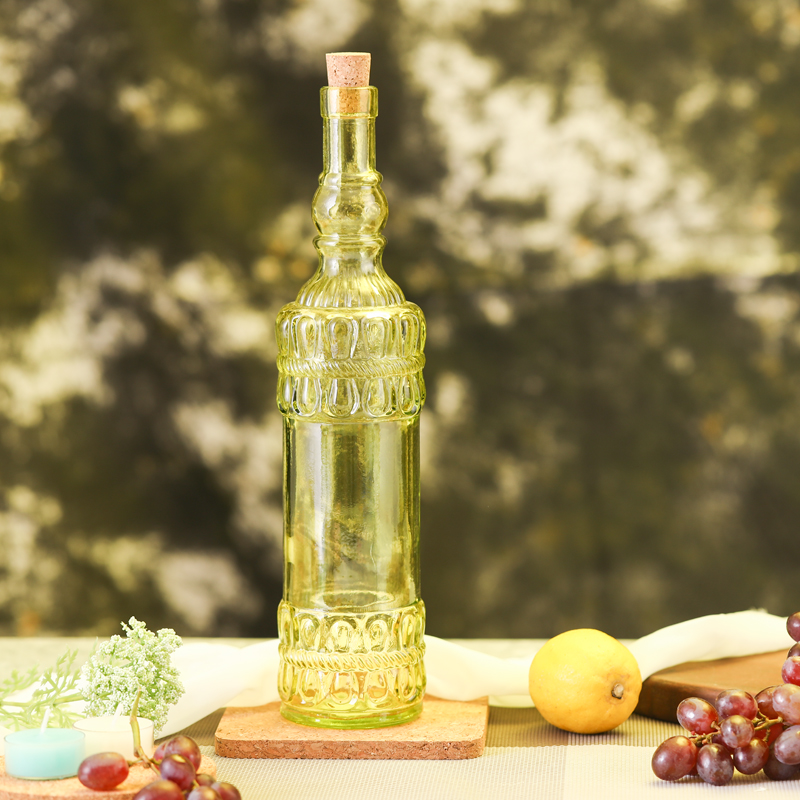 软木塞玻璃液体调味瓶 圆花边 黄色 700ml