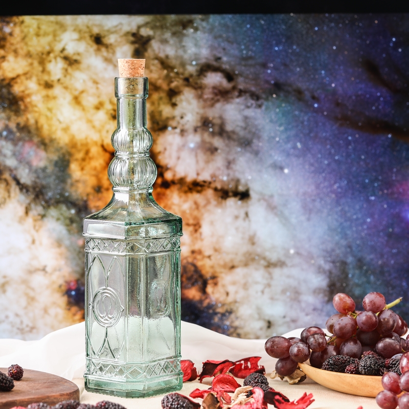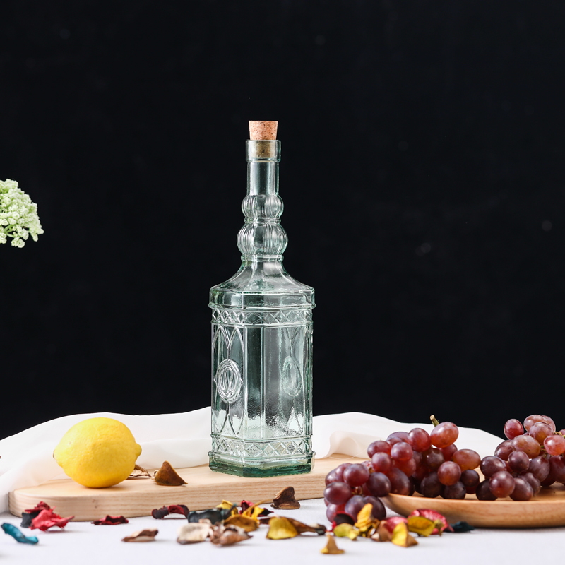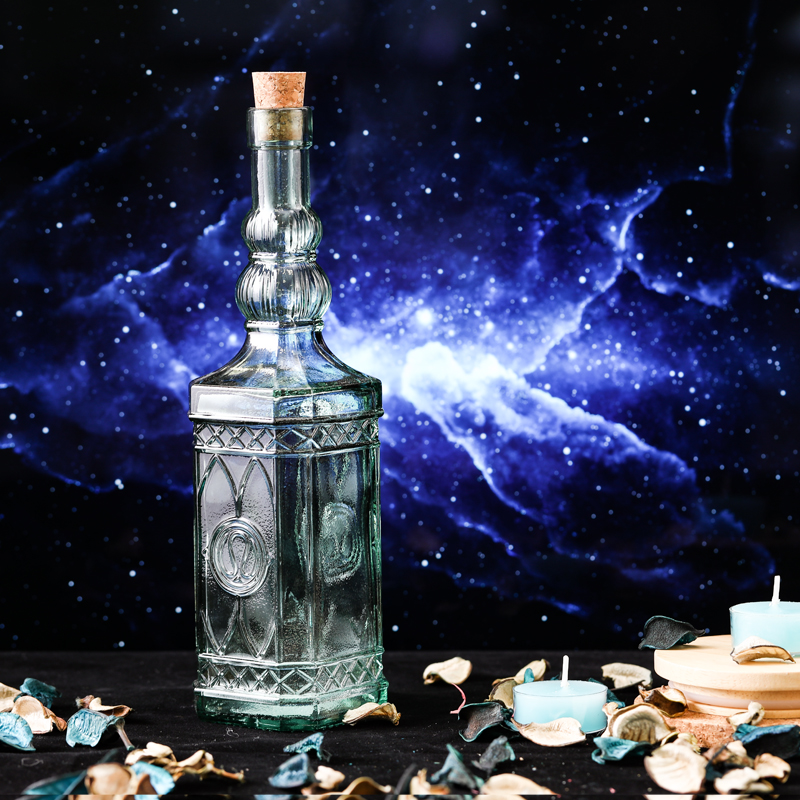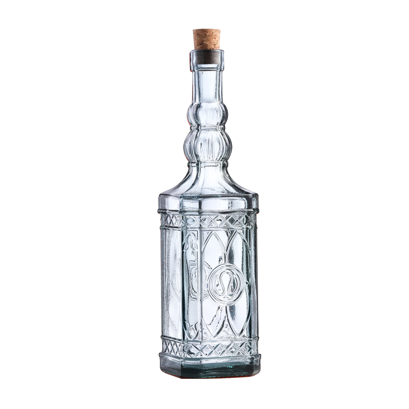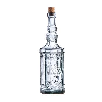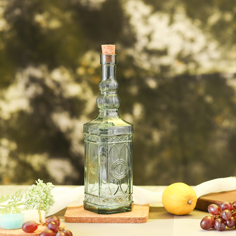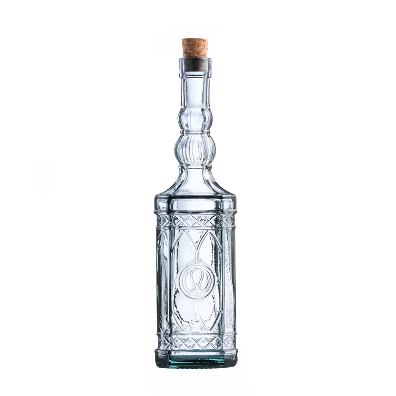 软木塞玻璃液体调味瓶 方花纹 浅蓝 500ml