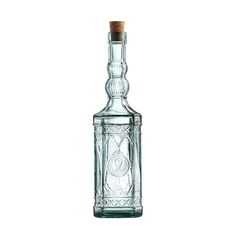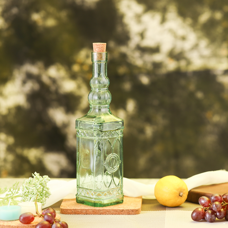 软木塞玻璃液体调味瓶 方花纹 淡绿 500ml