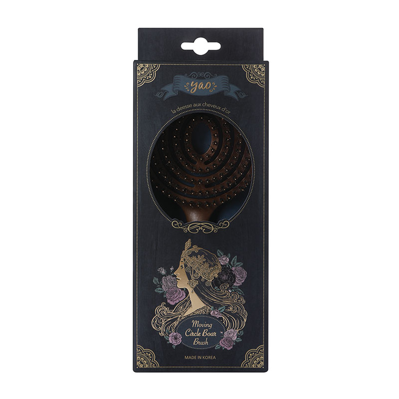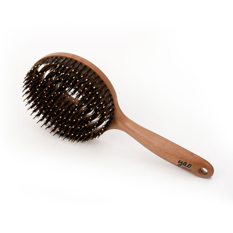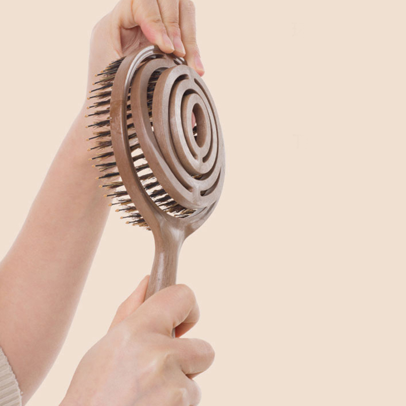 镂空按摩梳 圆形猪鬃毛款 木纹棕
